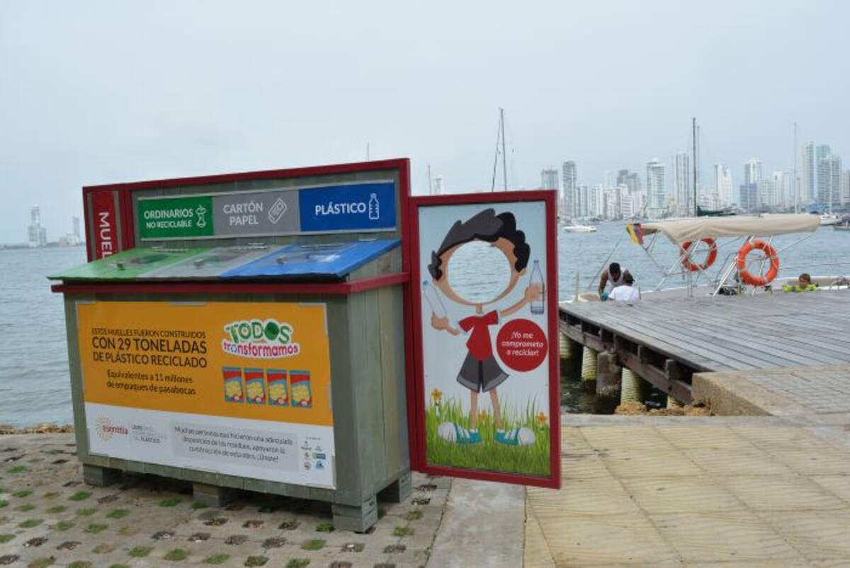 Recrearse o caminar por el Paseo Peatonal de la Bahía de Manga ahora no sólo es más grato, también debe generar más sentido de pertenencia y cuidado con el medio ambiente.Esto como resultado de los cinco nuevos módulos de vistoso diseño, para la separación de residuos sólidos, recientemente instalados a lo largo de este parque lineal en armonía con los cinco muelles y miradores allí construidos el año pasado.Todo este mobiliario de muelles y dispositivos de clasificación de residuos para hacer reciclaje, son obra de la empresa cartagenera Esenttia by Propilco, que los fabricó con resistente y durable material de plástico reciclado con apariencia de madera, y se los regaló a la comunidad de Manga y a los foráneos que visiten el Paseo de la Avenida Miramar. “Esenttia tiene dentro de su política social corporativa, trabajar fuerte en el proceso de cierre del ciclo del plástico reciclado, que es una forma de estimular al reciclaje mediante la pedagogía”, explica Carlos Crismatt Corena, jefe de Responsabilidad Social Corporativa de la mencionada empresa.Y agrega: “Empezamos a buscar un espacio donde pudiéramos asociar la apropiación de un cuerpo de agua limpio con el uso adecuado del reciclaje, y fue así como colocamos en puntos ecológicos cinco módulos asociados con cada muelle en Manga”.La idea de promover el reciclaje mediante esta estrategia de módulos separadores de residuos en el Paseo de la Miramar, fabricados precisamente con materia reciclada, es convertir los desechos en algo útil y reutilizable, y no en un contaminante de caños y playas.“Estamos mostrándole a la gente que sí se puede hacer, por ejemplo, una buena disposición del plástico al convertirlo en elementos o mobiliario que sean de uso público, para que la ciudadanía se apropie de ellos”, agrega Crismatt.