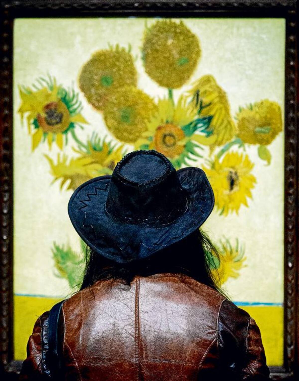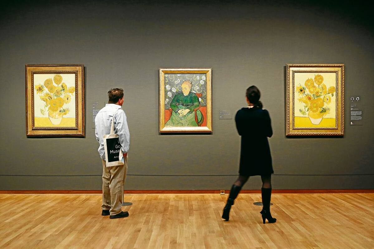 En la muestra se destacan dos versiones de la serie “Girasoles”, a ambos lados de un retrato conocido como “La berceuse”, o “Mujer en una mecedora”.