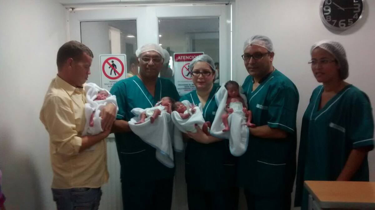En la Clínica Santa Cruz de Bocagrande por medio de cesárea nacieron esta mañana los cuatrillizos Ian, Brandon, Bianca y Briana Pantoja Bolívar.