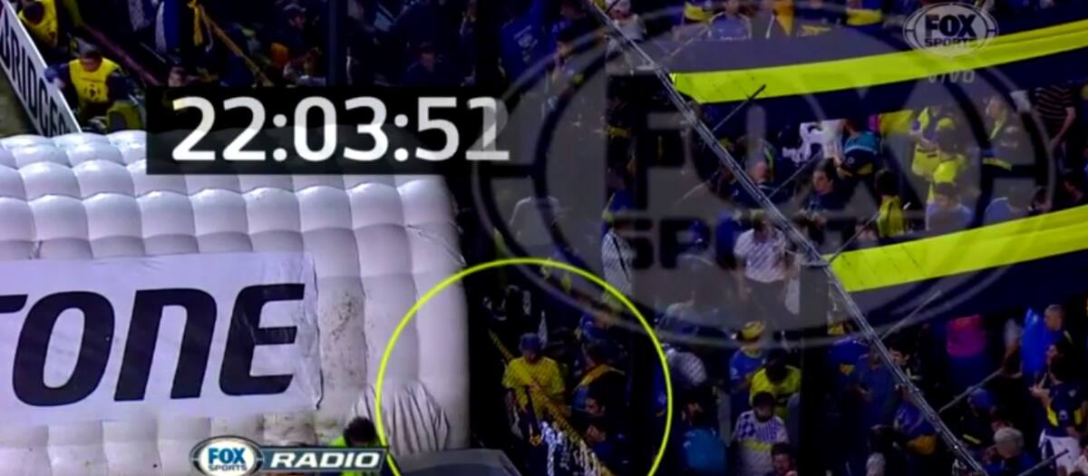 Esta nueva prueba fílmica arroja claridad sobre lo ocurrido ya que hasta ahora circulaban distintas versiones sobre la agresión, que dejó a cuatro jugadores de River con molestias en los ojos y quemaduras en el cuerpo.Incluso la propia cadena Fox había difundido durante el partido otra imagen de un hincha tratando de romper la manga protectora al parecer con una bengala y se pensaba que por allí se había lanzado una preparación casera basada en pimienta de cayena.