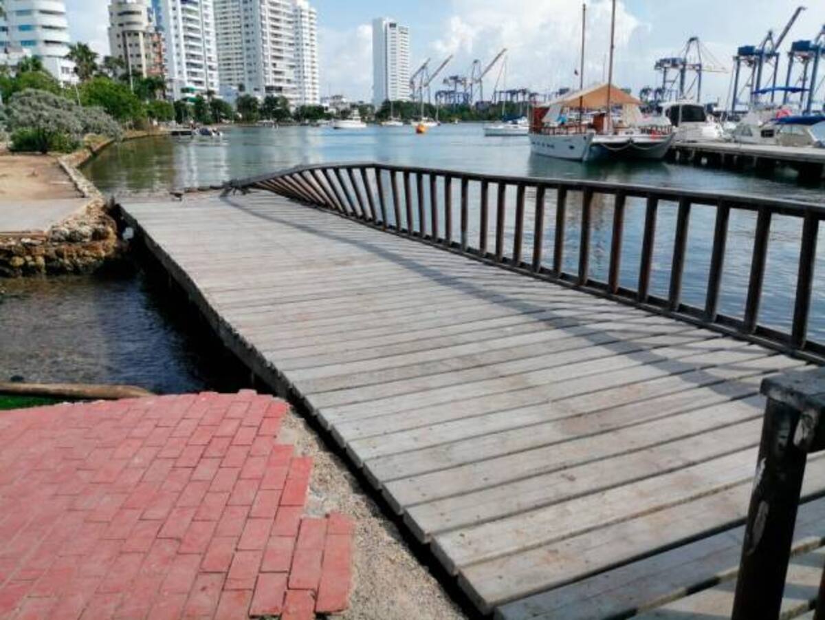 Hace cuatro meses, la baranda de este mismo muelle se cayó por primera vez y Esenttia la reparó, pero ante el continuado abuso del mobiliario se presenta ahora el mismo problema.