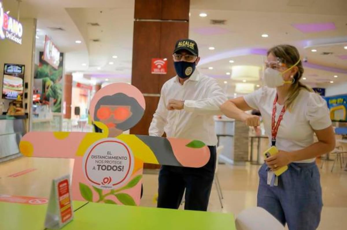 El alcalde William Dau Chamat hizo un recorrido de inspección por tres de los principales centros comerciales de la ciudad, para verificar que cumplan con los protocolos de bioseguridad aprobados para su reapertura y el aforo permitido para evitar aglomeraciones.