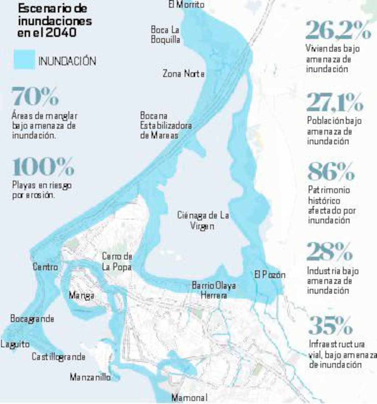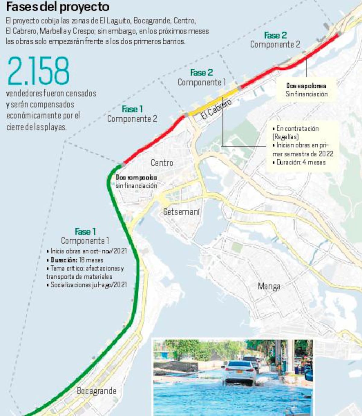 El proyecto cobija las zonas de El Laguito, Bocagrande, Centro, El Cabrero, Marbella y Crespo; sin embargo, en los próximos meses las obras solo empezarán frente a los dos primeros barrios.