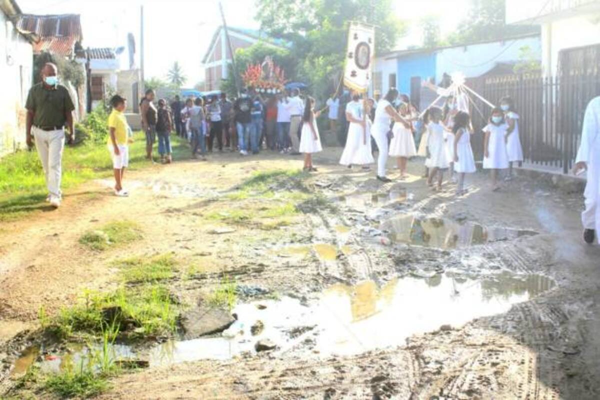 La procesión recorrió varias de las pantanosas calles de esos sectores. Los vecinos de estas zona esperan que el paso de la imagen les haga el milagro de que se las adecuen.