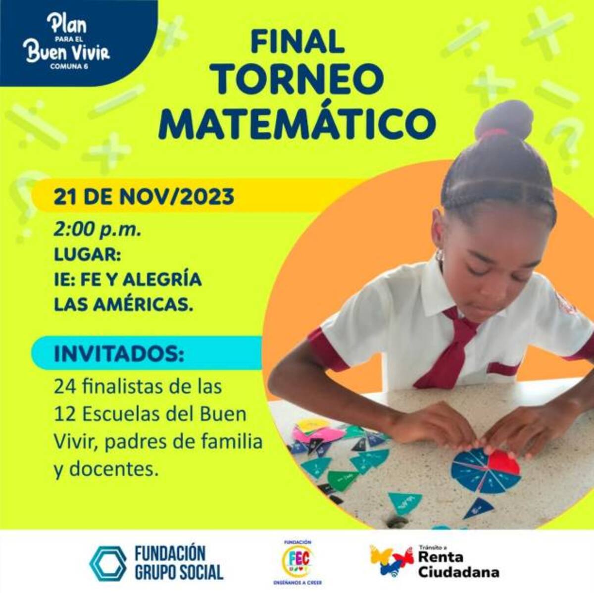 El Torneo Matemático se ha concebido como parte de la estrategia de educación dentro de la Línea de Competencias en Lenguaje y Matemáticas del PPVB. Esta estrategia busca mejorar las competencias en estas áreas entre los estudiantes de educación primaria de 12 Instituciones Educativas Oficiales (IEO) de la comuna 6. Lea también: Las matemáticas, fundamentales para la educación