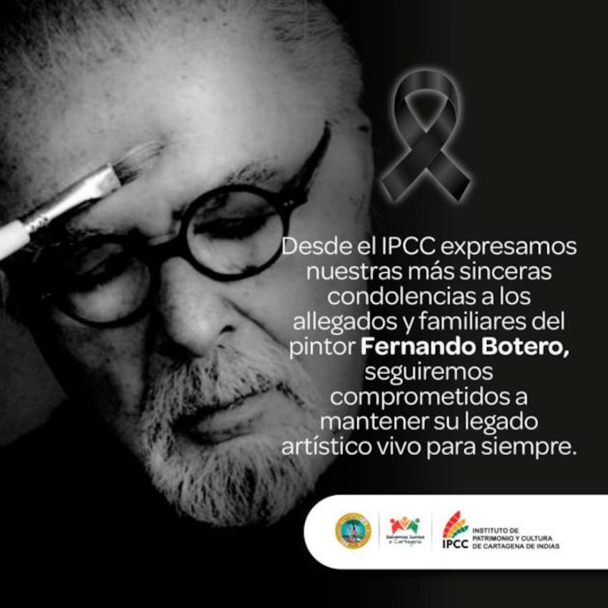 “Hay mucha nostalgia en nuestro corazón porque hemos perdido a uno de los artistas más representativos del país y de los mejores del mundo. Botero no sólo fue un artista, sino una fuente de inspiración y de superación para muchos artistas locales y nacionales. Lamentamos su partida, y a su vez nos alegramos por cada uno de sus triunfos, por los aportes significativos que hizo, por cada una de sus obras que nos cautivaron y enamoraron. Deseamos descanso para su alma y mucha fortaleza para su familia en este difícil momento”, expresó Oscar Uriza Pérez, director del IPCC.