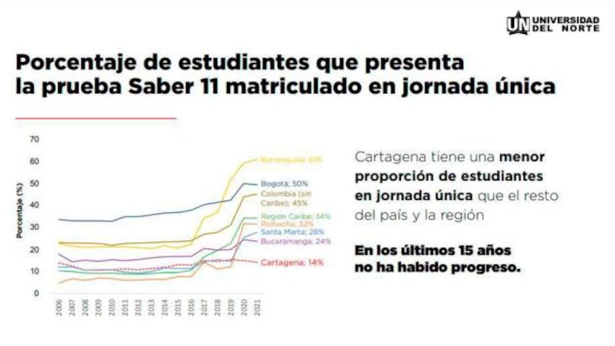 El caso de Cartagena es aún más preocupante, pues de todas las ciudades del Caribe, es la que más ha retrocedido en su desempeño educativo con base en los resultados obtenidos por los estudiantes en las Pruebas Saber 11° en 2021.
