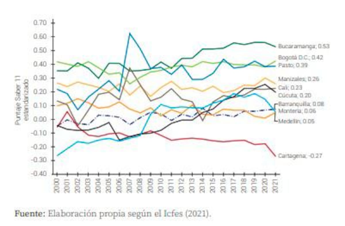En una escala donde 0 representa el promedio nacional, la ciudad se encuentra en -0,27. En contraste, otras ciudades como Montería o Barranquilla se encuentran por encima con indicadores como 0,06 y 0,08, respectivamente.
