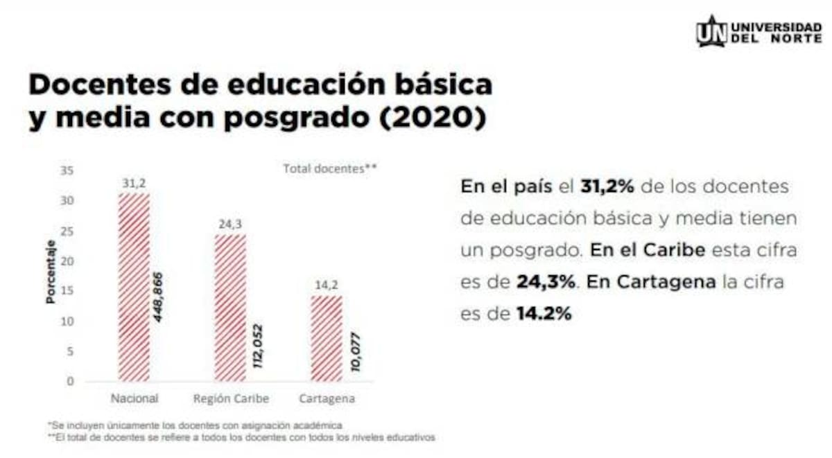 Pero las falencias que hay no solo están en los estudiantes. El estudio también reveló que solo el 14,2% de los docentes de educación básica y media tienen posgrado. En el Caribe, se trata del 24,3% y en toda Colombia del 31,2%.