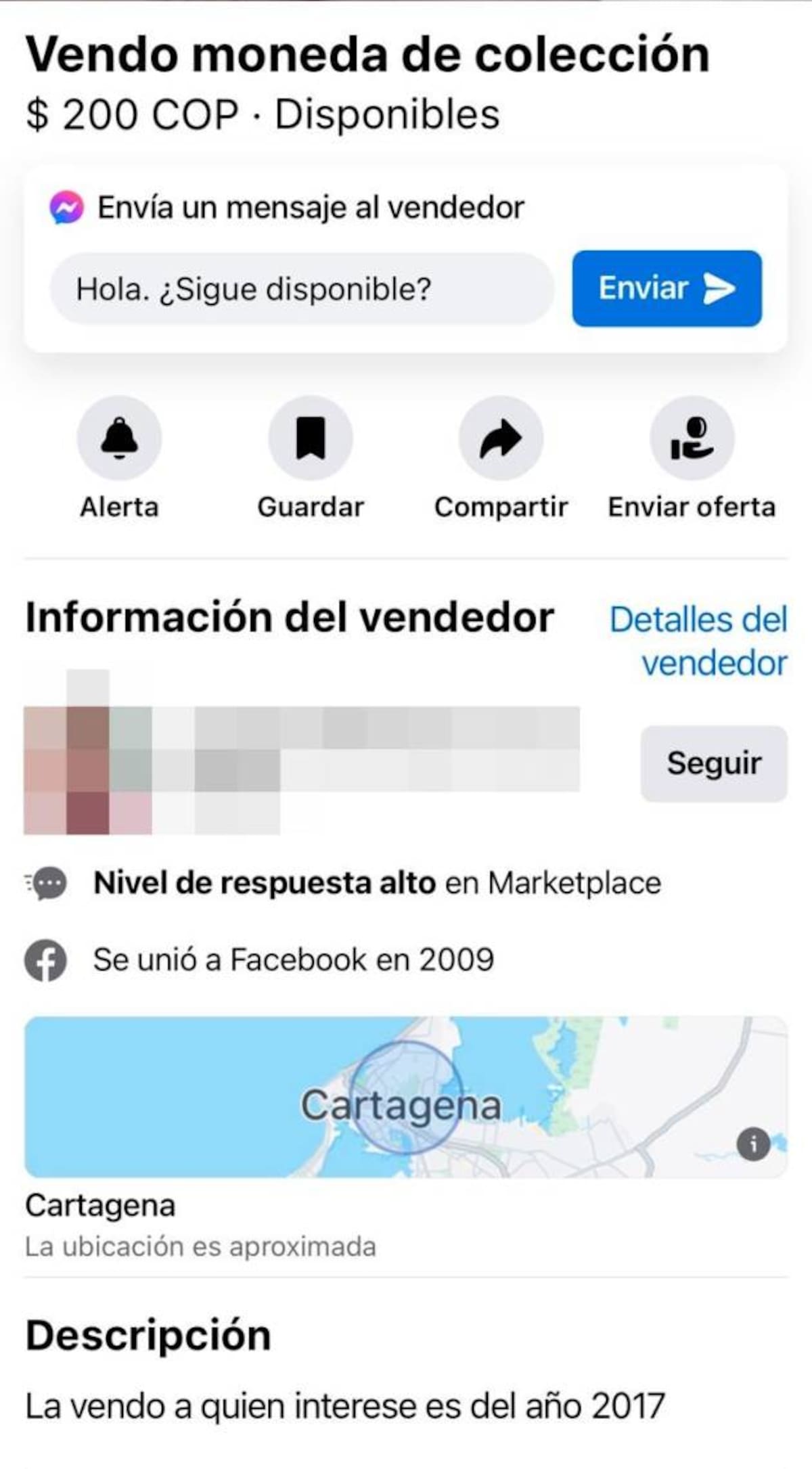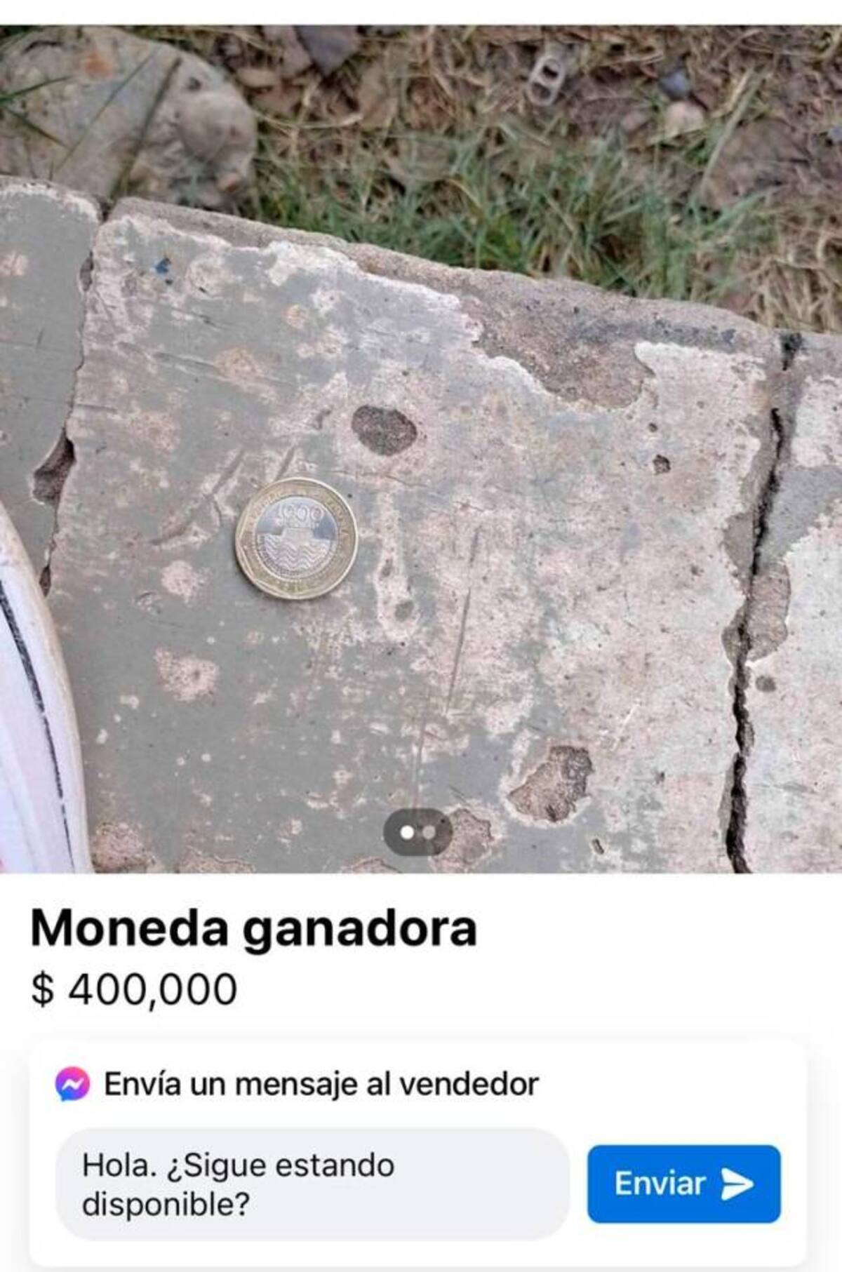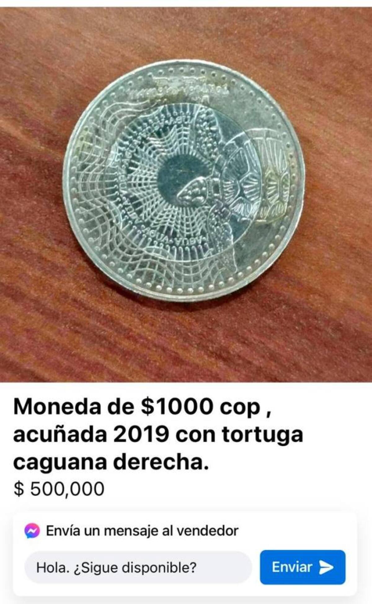 Actualmente hay tres publicaciones con ubicación de Cartagena donde ofrecen la moneda, y lo curioso es que el precio es inferior a los $600.000. Los valores en que se ofrece este “producto” para coleccionistas en Cartagena es de $500.000, $400.000 y hasta $200.000.