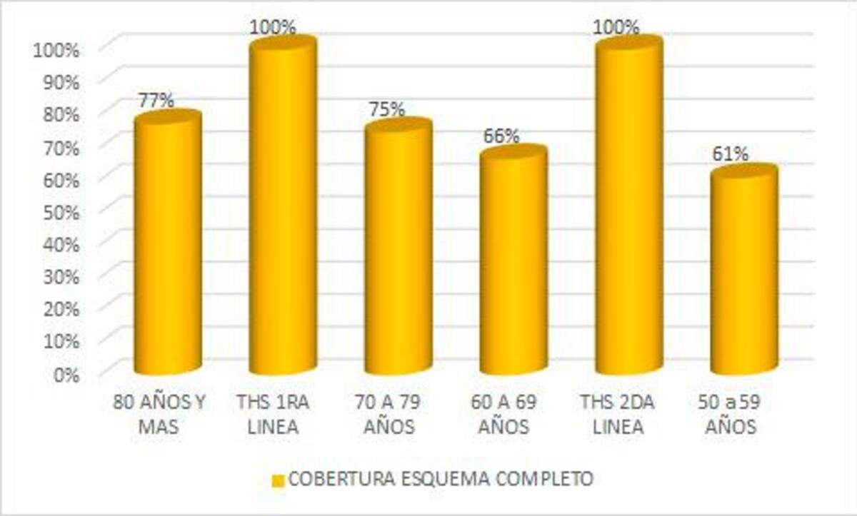 - Adultos mayores de 80 años: (23.757 personas a vacunar) el 77% tiene esquema completo, faltarían 5.465 personas.
