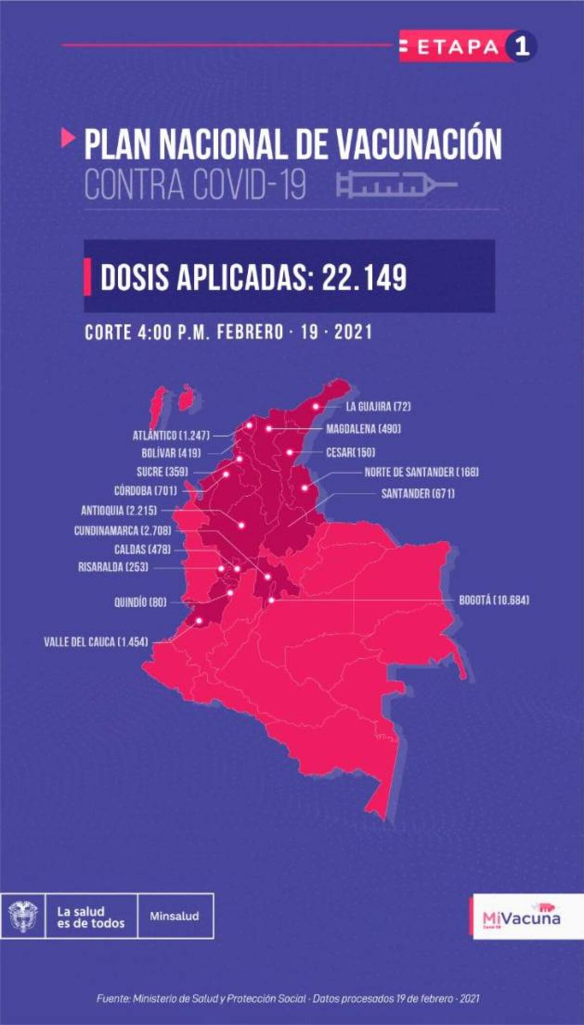 Según el reporte de vacunación contra el COVID-19 del Gobierno Nacional, en Bolívar ya se han aplicado 419 dosis, es decir el 27% del total de los biológicos.