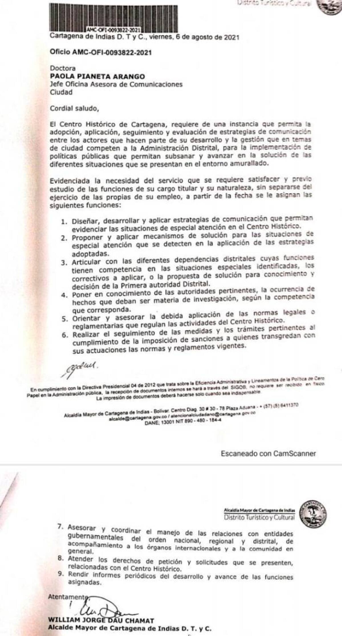 Ante ello, el alcalde de Cartagena, William Dau Chamatt, le encargó a Paola Pianeta, jefa de Comunicaciones y Prensa del Distrito, nuevas funciones, entre ellas la de liderar la recuperación del sector amurallado.
