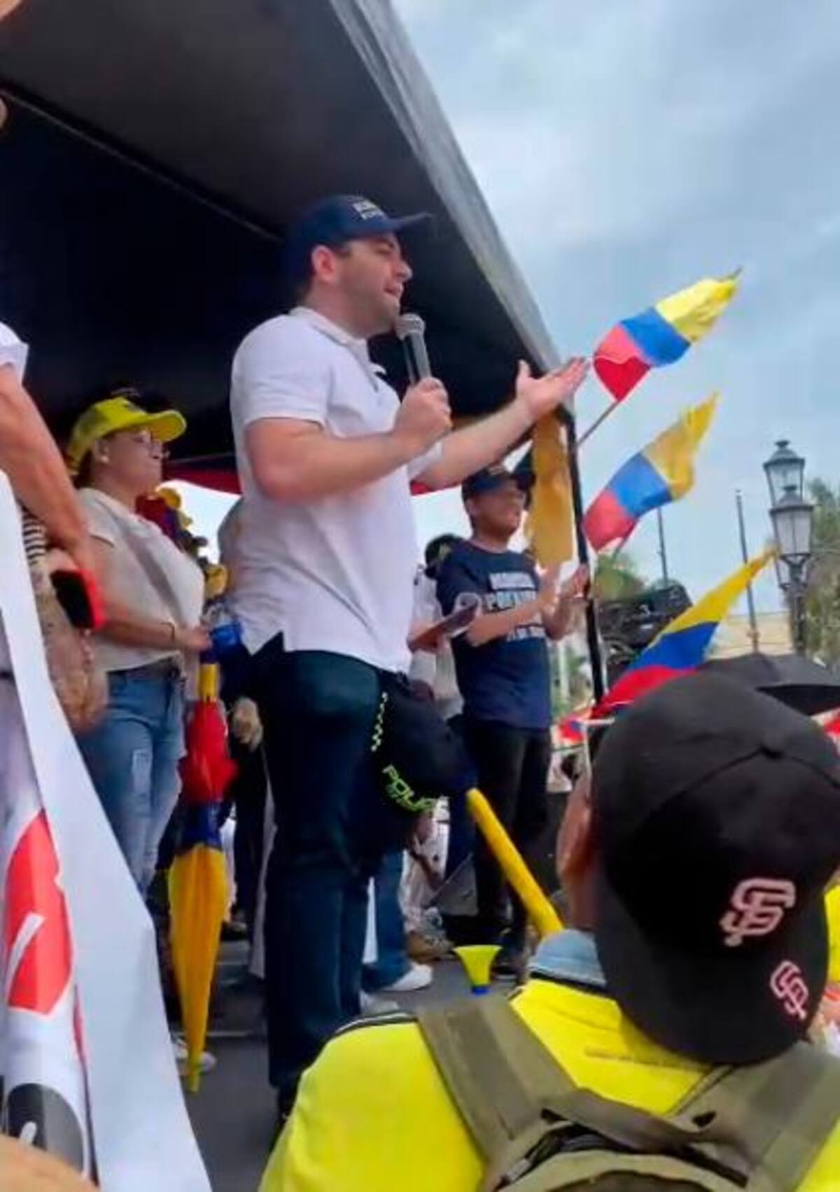 11:00 a.m. El senador Enrique Cabrales, del Centro Democrático, se une a la manifestación en contra del gobierno del presiente Petro en Cartagena.