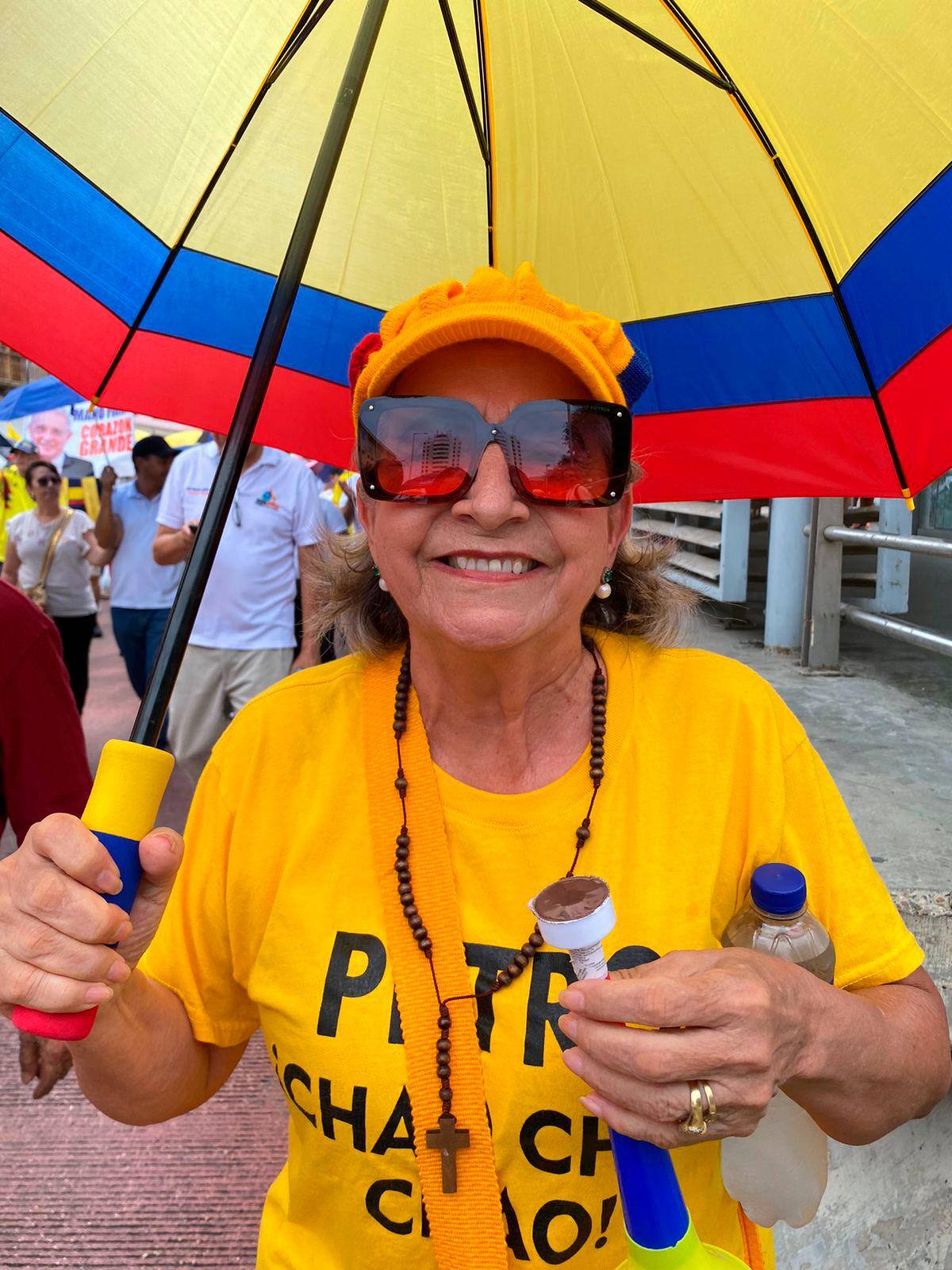 “Estoy luchando por el futuro de Colombia. Por el futuro de los nietos y de mis hijos. Porque está peligrando, en estos momentos, la democracia. ¡Que viva Colombia, y fuera Petro”: Rosario Carvajal, marchante.