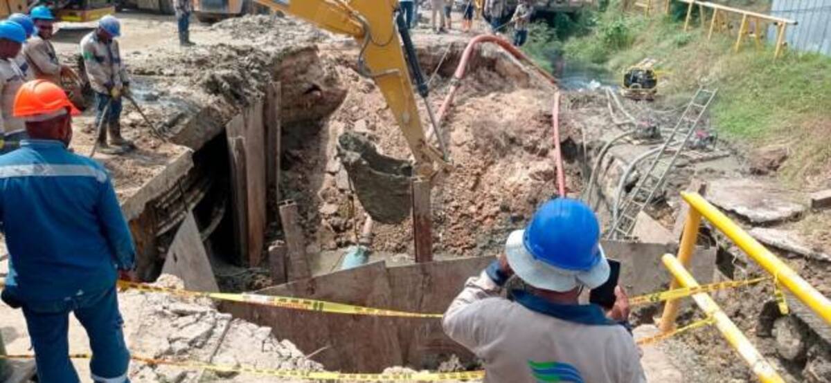 Según Aguas de Cartagena, la complejidad en la reparación de la red de agua se debe a que está ubicada a más de 7 metros de profundidad, justo debajo de un talud de cemento en un canal que tuvo que ser demolido.
