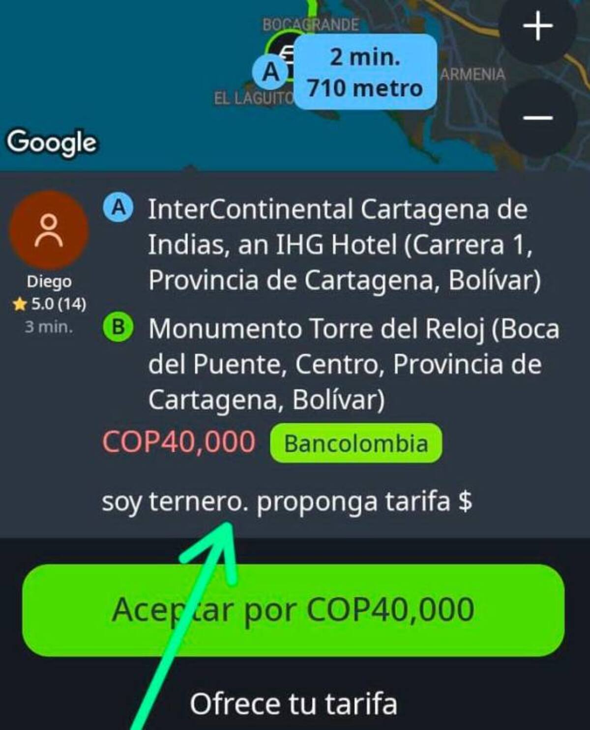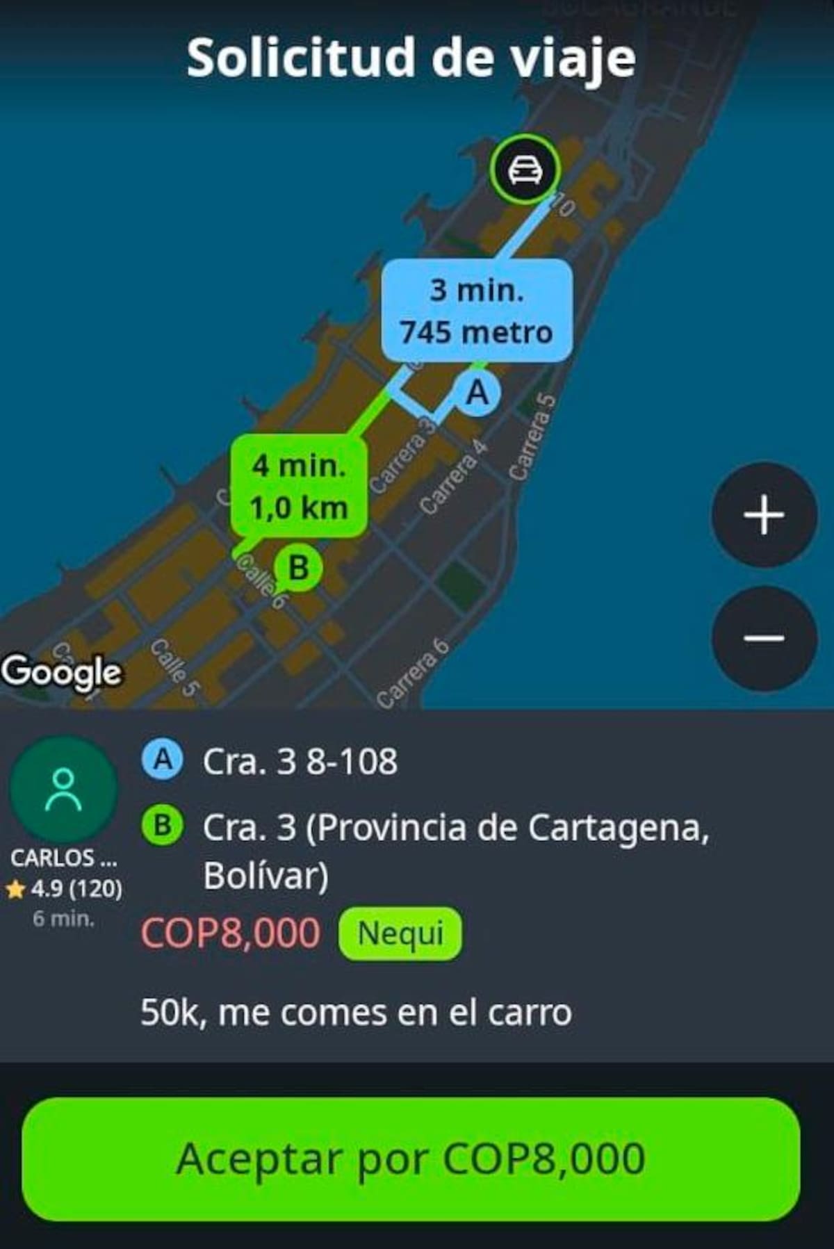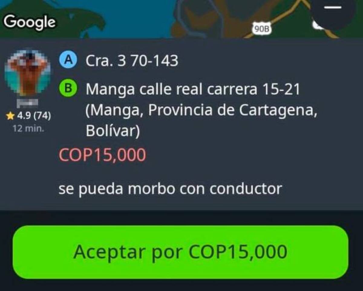 Uno de los conductores cartageneros, quien pidió no revelar su nombre, contó a El Universal que la plataforma Indrive ha cogido otro rumbo, ya que muchas de las solicitudes son para satisfacer sexualmente a miembros de la comunidad LGBTI. “Los que lo hacen no ponen una foto de perfil propia, sino fotos de paisajes, animales o simplemente dejan el usuario sin foto. La modalidad que emplean es colocar la tarifa, por lo general con un muy buen precio, y en la descripción de la carrera escriben indirectas como: chupo por $30 mil, trío por $100 mil, canto por $50 mil. Es algo bastante incómodo, porque algunos de los que nos dedicamos a esta labor somos padres de familia y entramos aquí con seriedad”.