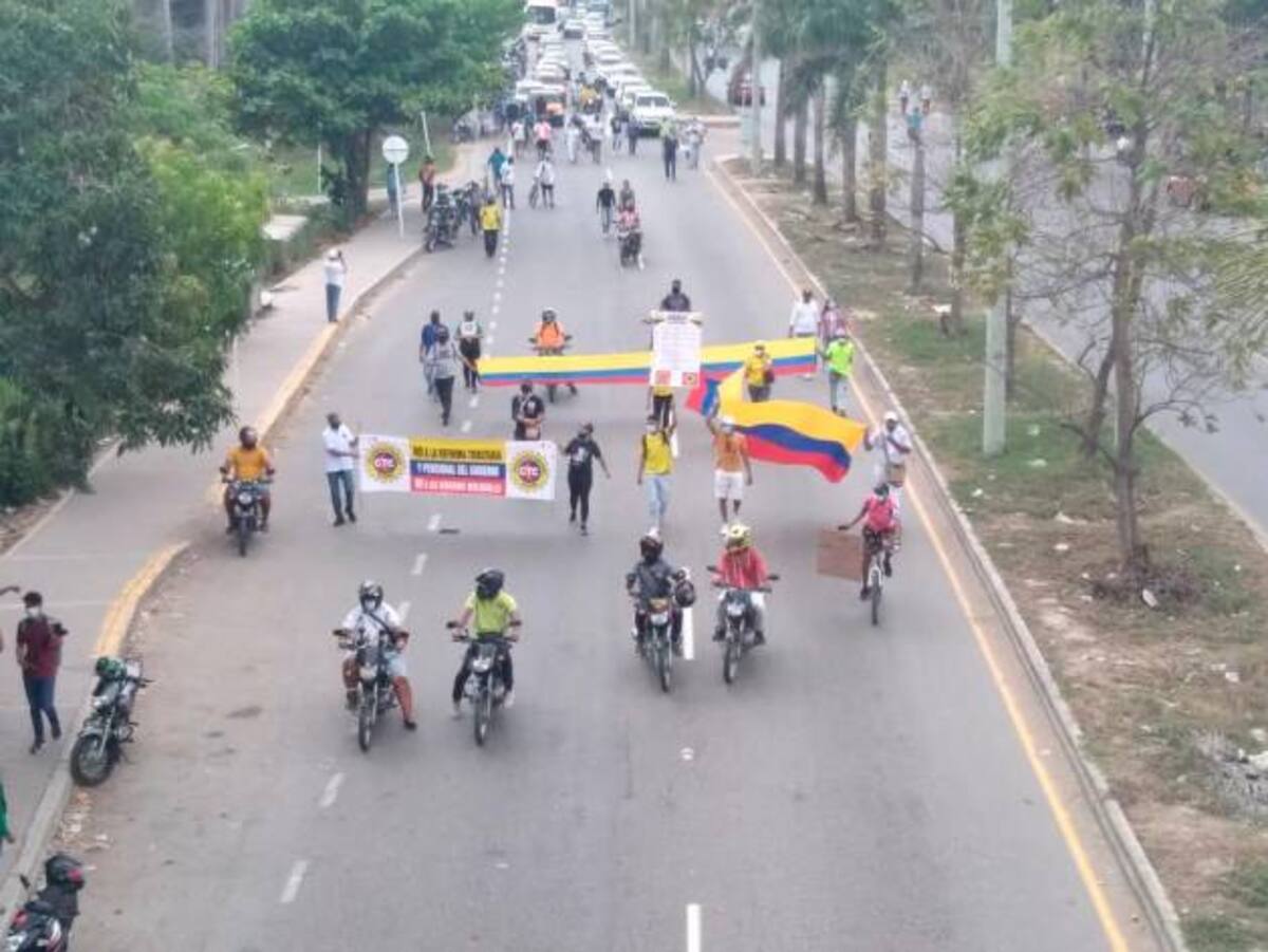 9:20 a.m: Ya arrancó la marcha desde el punto del Sena de Ternera, que se dirige para sumarse a los manifestantes de la bomba del Amparo. A ese grupo se sumaron mototaxistas.