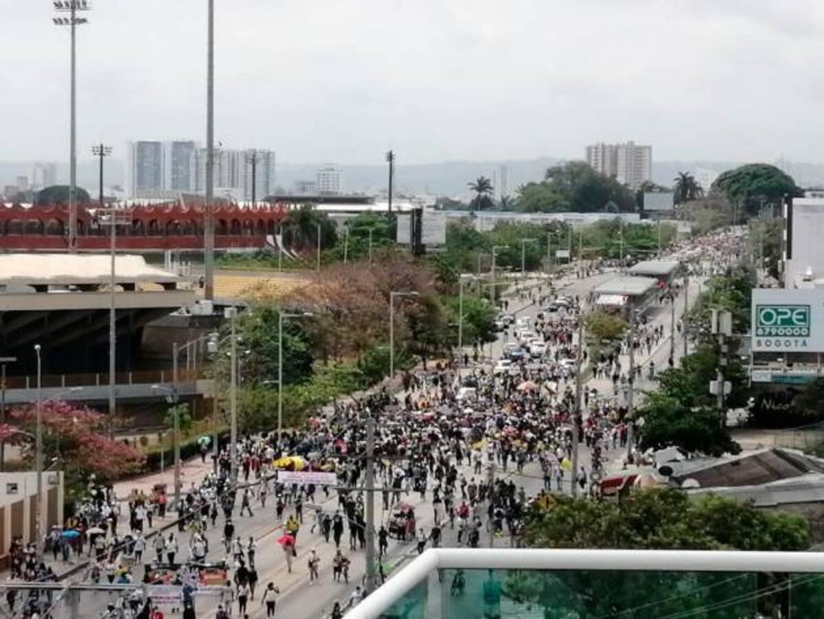 La protesta se realiza en la ciudad, y en otros lugares del país, a pesar de que ayer martes el Tribunal Administrativo de Cundinamarca ordenó aplazar las manifestaciones hasta que se logre la inmunidad de rebaño o se supere la emergencia sanitaria ocasionada por la pandemia del coronavirus.