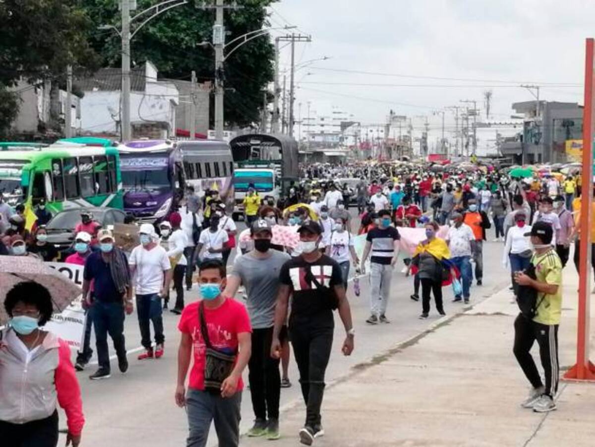 El grupo que se concentró en el peaje de Turbaco ya se desplaza hacia Ternera, al igual que una caravana que baja desde el municipio vecino.