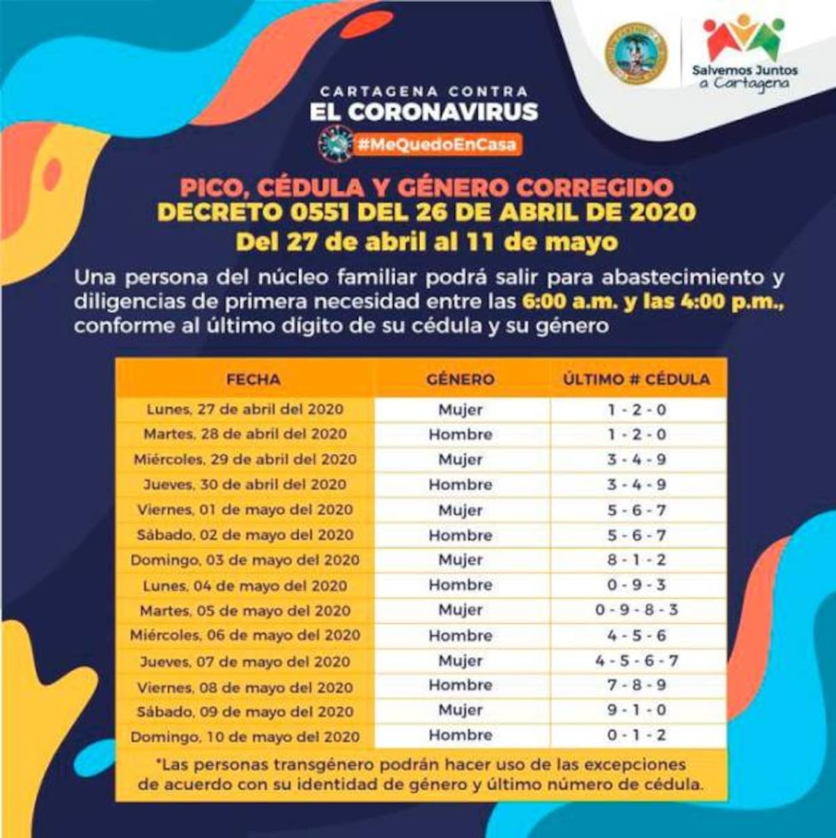 La confusión se generó en un primer calendario publicado por la Alcaldía de Cartagena que perjudicaba a las personas cuyas cédulas terminan en 9 y 0 ya que no aparecían en ningún día hábil para realizar trámites en entidades bancarias o diligencias de tipo legal.
