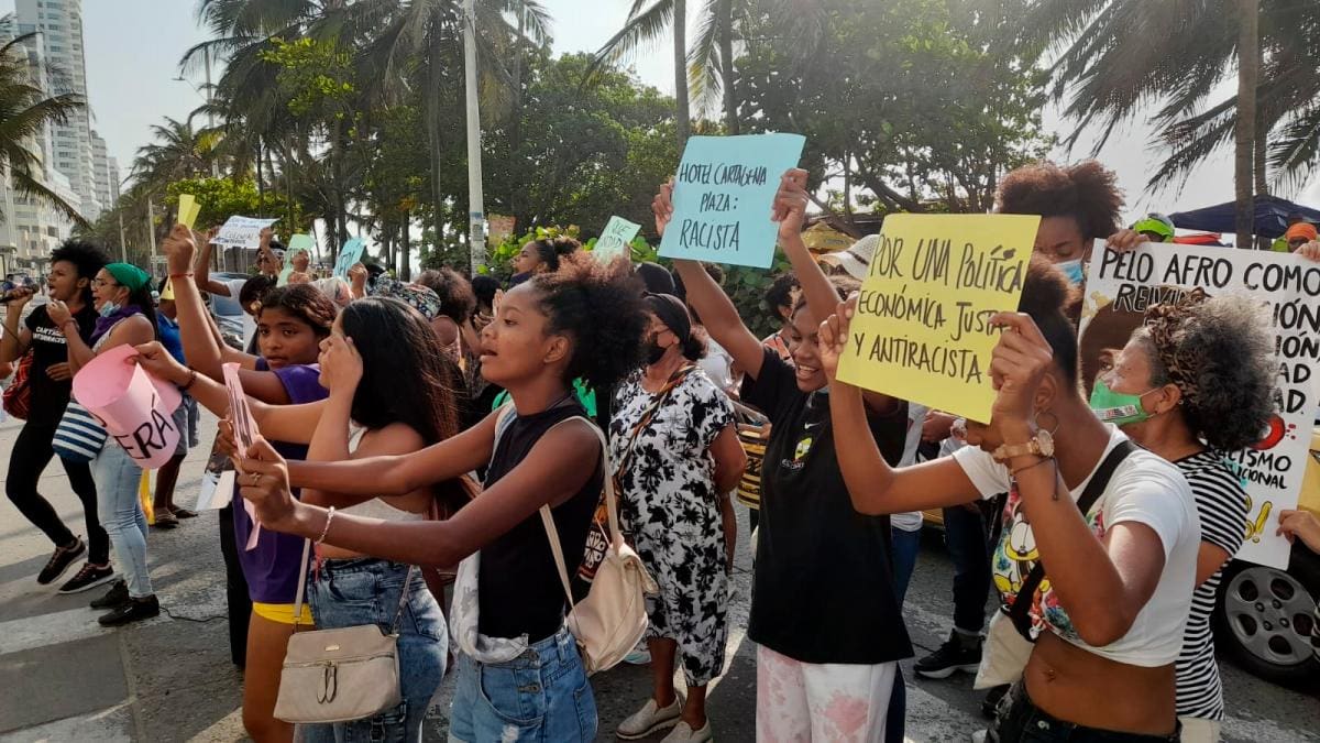 Con mensajes como “Cartagena Antirracista”, un grupo de ciudadanos se unió para realizar un plantón frente al hotel Cartagena Plaza, el cual fue señalado de discriminar a un joven que buscaba acceder a un empleo en este lugar.