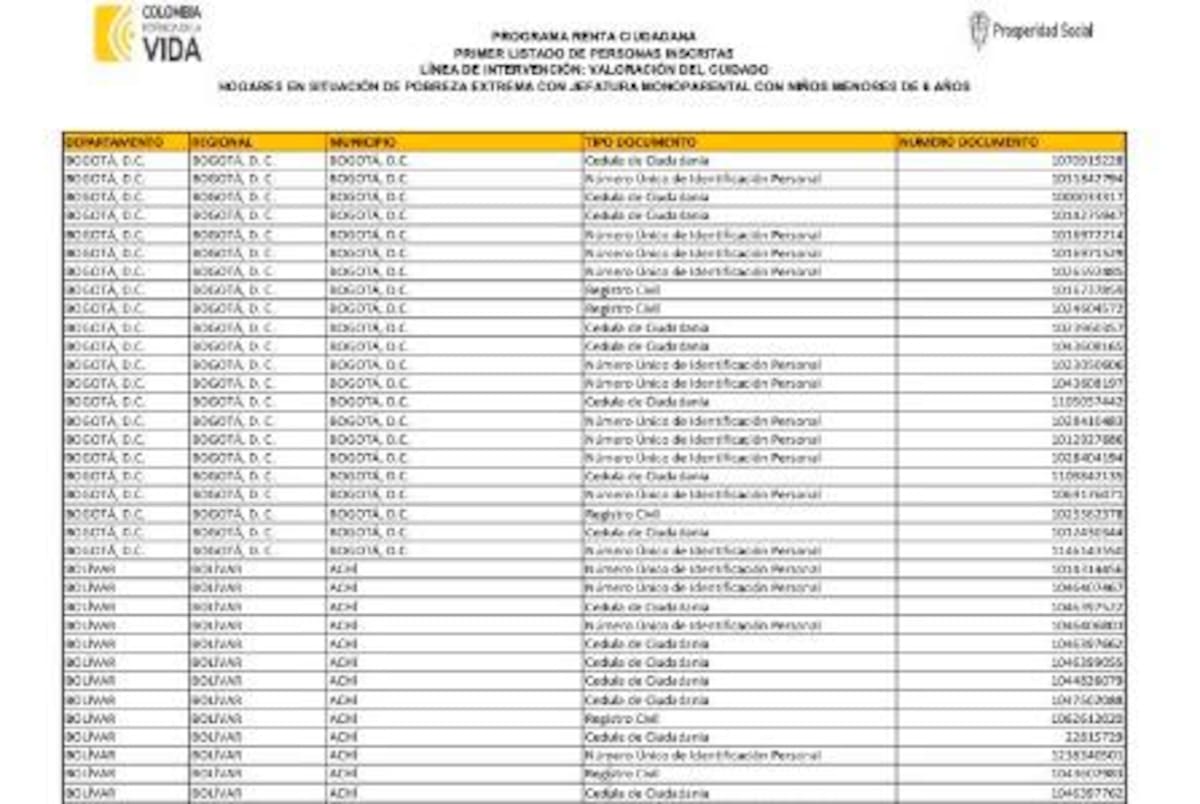En este primer listado prioritario se escogieron 544.108 hogares conformados por mujeres cabeza de hogar, con niños y niñas menores de 6 años del grupo A del Sisbén, quienes reciben 500.000 pesos cada 45 días.