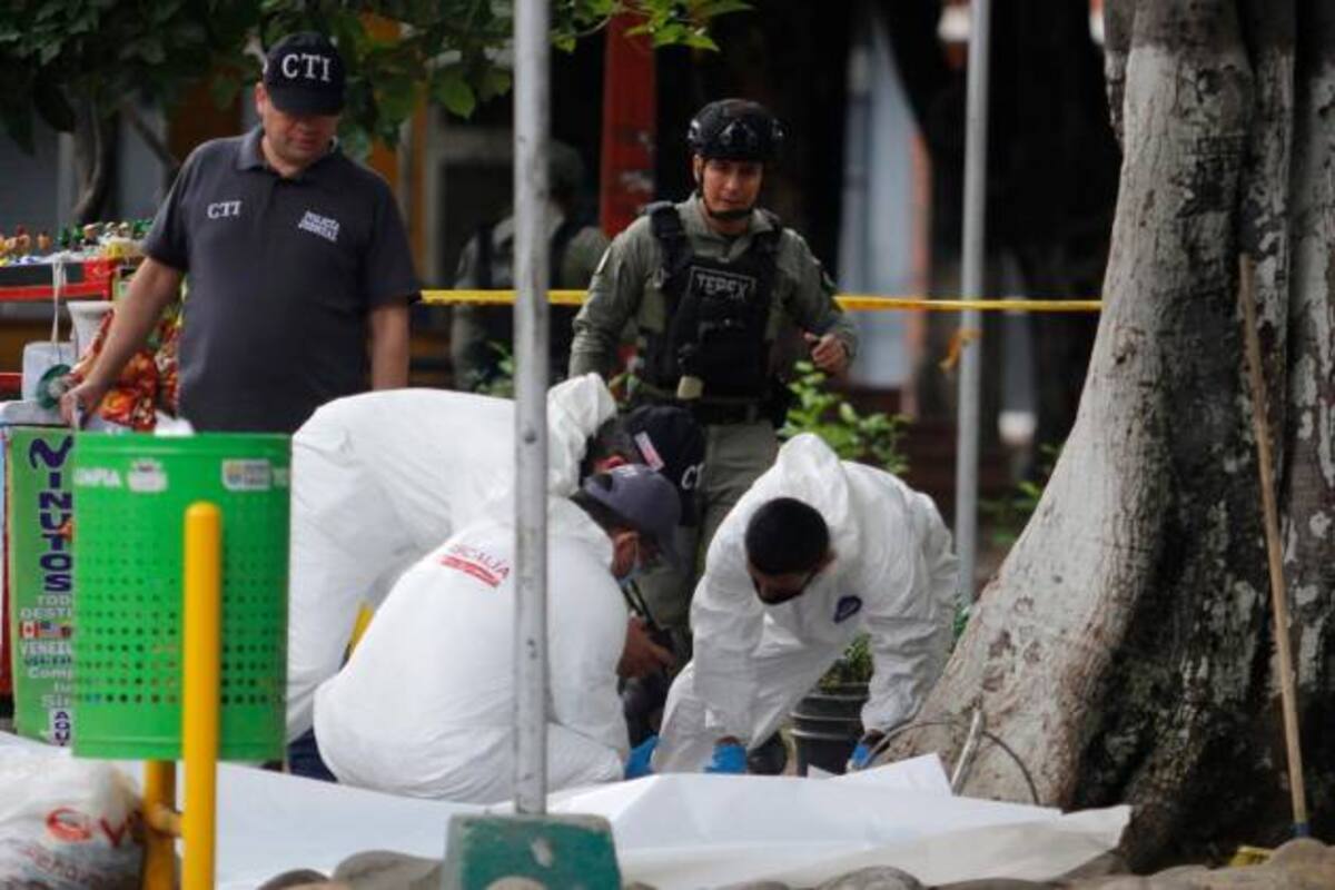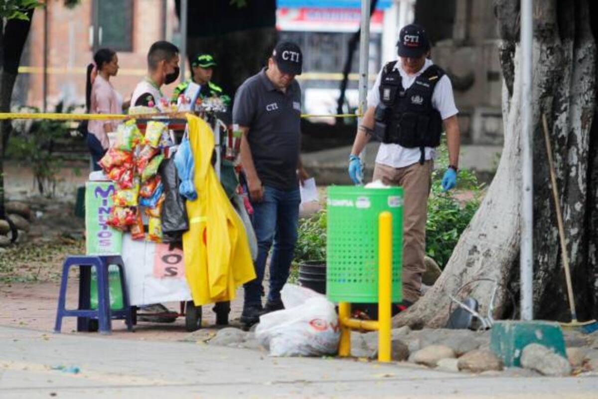 Integrantes de la Policía colombiana y el Cuerpo Técnico de Investigación Criminal y Judicial (CTI) realizaron el levantamiento del cuerpo de la víctima en el parque Mercedes Ábrego en Cúcuta.//Foto: Mario Caicedo - Efe.