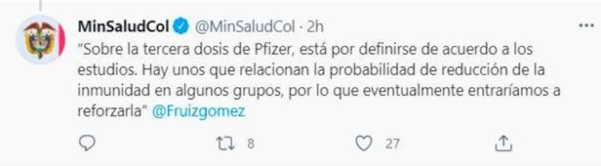 “Estamos cerca de decisiones de tipo presupuestal y de definiciones de guardar presupuestos para una próxima vacuna; es muy probable un refuerzo de vacunación el año entrante”, resaltó el ministro.