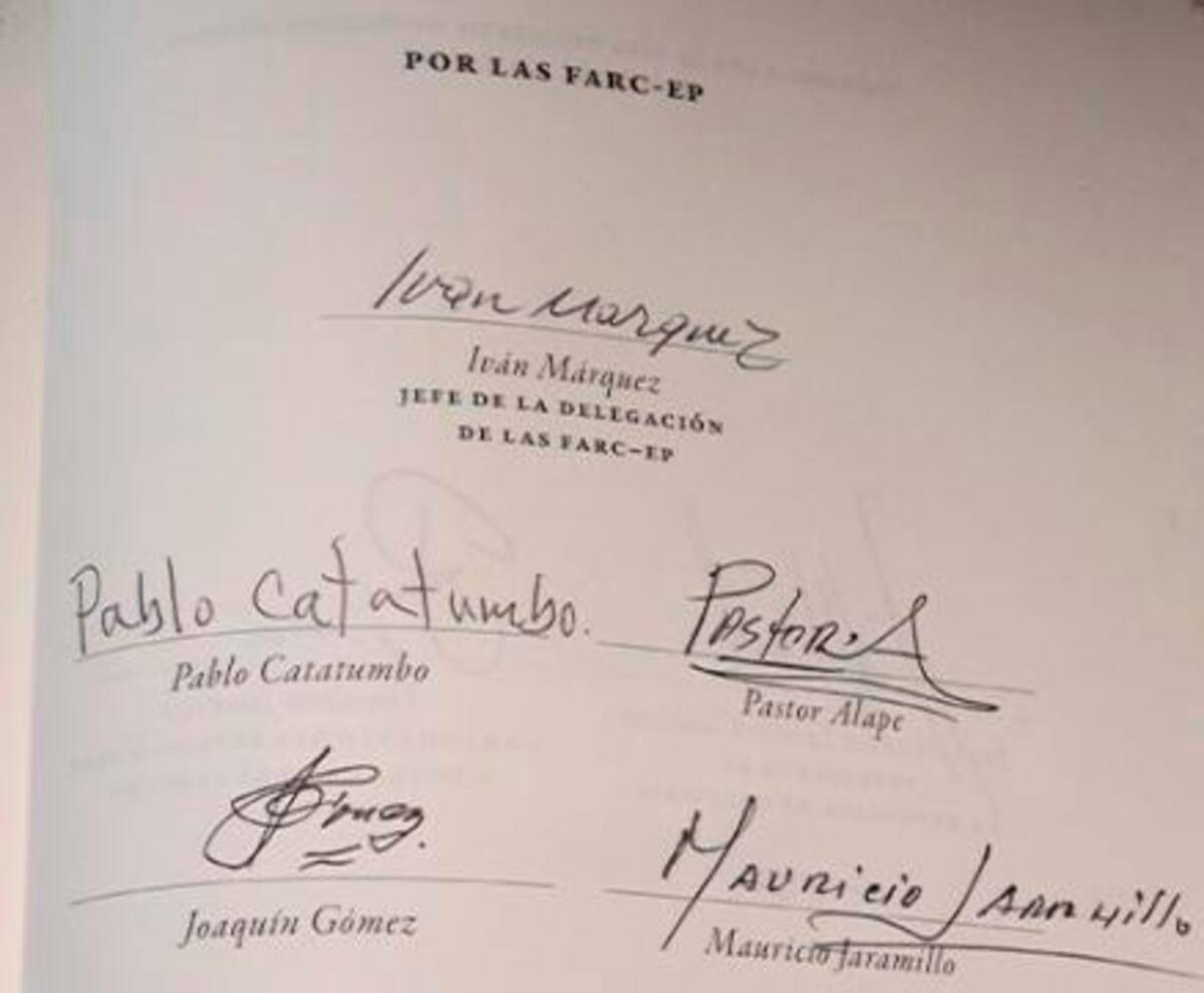 La firma de Iván Márquez conocida en otras cartas con la firma que estampó en el Acuerdo de Paz y con la presentada en el documento y las dos primeras coinciden entre sí, pero no con la presentada en la carta de las disidencias.