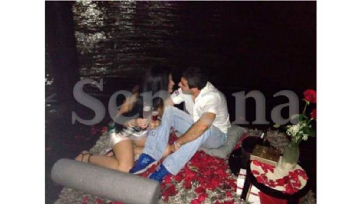 En la primera foto revelada por Semana se muestra a la exparlamentaria y al exalcalde de Barranquilla en lo que parece una cena romántica. Ella está sentada a su lado, en una cama de pétalos rojos, con un vestido corto. Ambos tienen una copa de licor en sus manos.