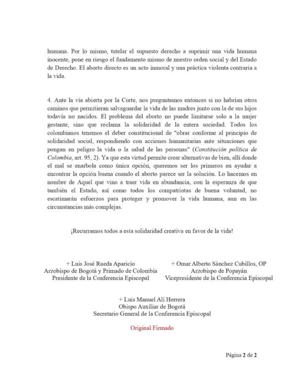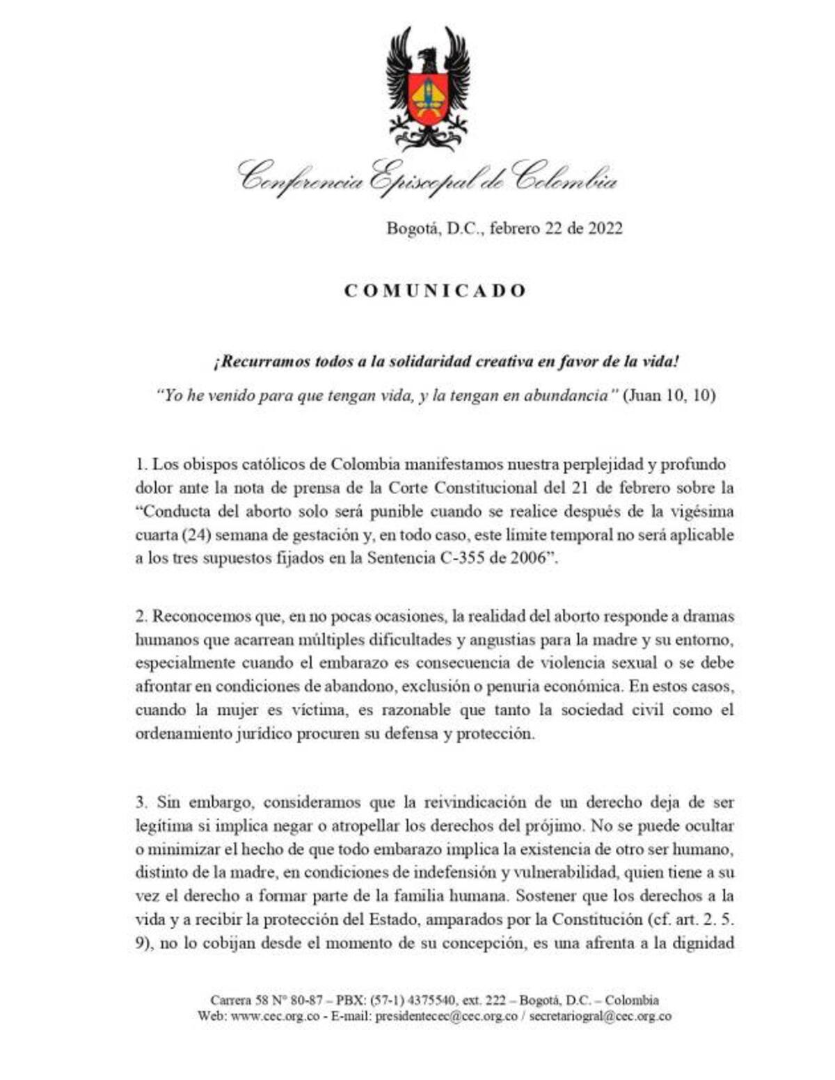 Luego de que la Corte Constitucional votara a favor de la despenalización del aborto en Colombia, la iglesia católica se pronunció al respecto, dejando clara su posición sobre esta decisión. Lea: ¡Histórico! Despenalizan el aborto en Colombia hasta los 6 meses de gestación