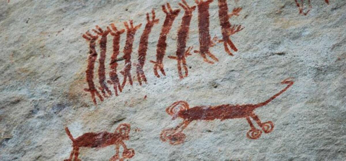 Allí es posible apreciar un conjunto de estos dibujos de color rojo que fueron elaborados en las rocas por tribus indígenas. Se estima que estas pinturas tienen más de 1.000 años de antigüedad.