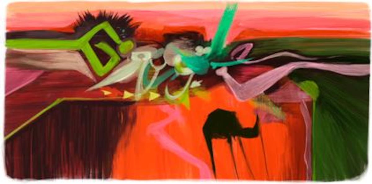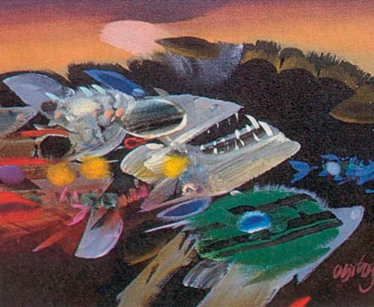 42. 1963. Inicia la serie “Barracudas”. Participa en la III Exposición Anual Interamericana de Pintura. Pinta “Homenaje a un poeta muerto”, en tributo a Jorge Gaitán Durán.
