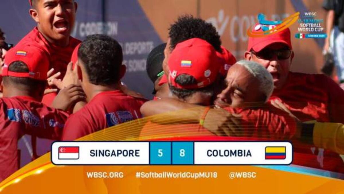 La selección Colombia logró este lunes un histórico triunfo al derrotar 8-5 a Singapur, en la tercera jornada de la Copa Mundial de Sóftbol Masculino Sub-18, que se realiza en Hermosillo, México. Le puede interesar: Juegos Nacionales: Bolívar buscará repetir Oro en Voleibol Playa Masculino