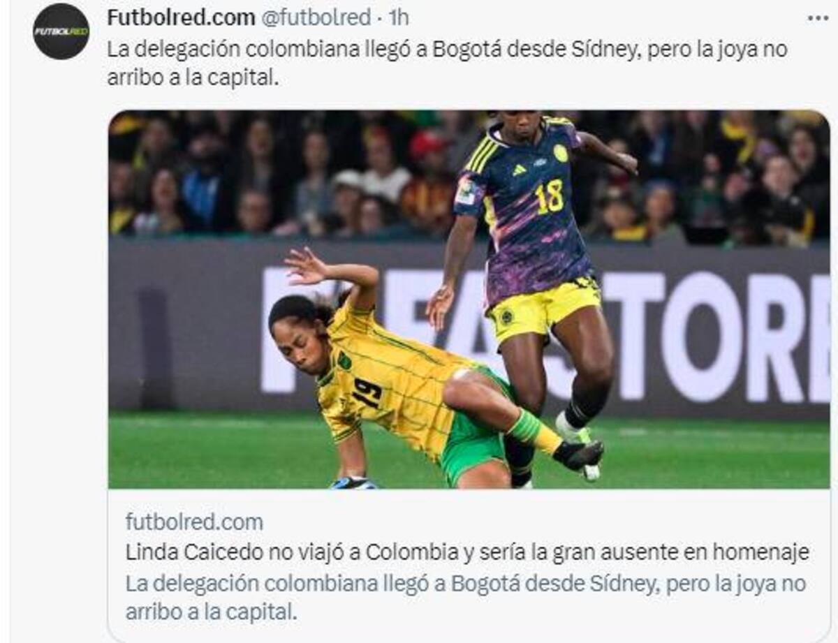 Una notable ausencia se podría ver hoy en el homenaje preparado para la Selección Colombia Femenina de fútbol, evento que será en Bogotá. Según versiones de prensa, cuando el grupo arribó al Aeropuerto El Dorado en la mañana de ayer, Linda Caicedo, la joven promesa de tan solo 18 años, no estaba entre las jugadoras que desembarcaron, y según información obtenida por la Revista Semana, esto se debe a su inminente partida hacia España. Lea aquí: Oficial: Neymar es nuevo jugador de Al Hilal saudí
