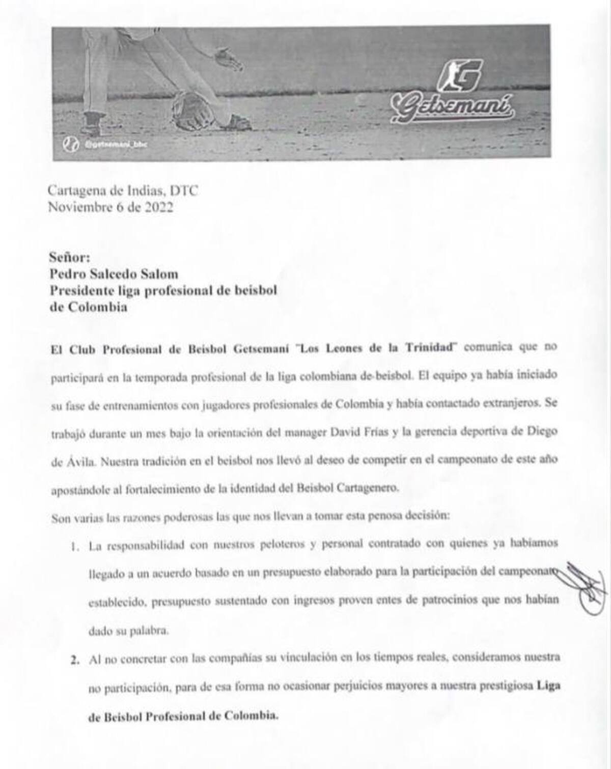 Malas noticias para los amantes del béisbol en la ciudad. Getsemaní, uno de los equipos que aspiraba a participar en esta temporada del béisbol profesional, no consiguió patrocinios y por eso decidió no hacer presencia en el torneo. Lea aquí: Tigres se sigue armando: ¡Ya está Adrián Sánchez en Cartagena!