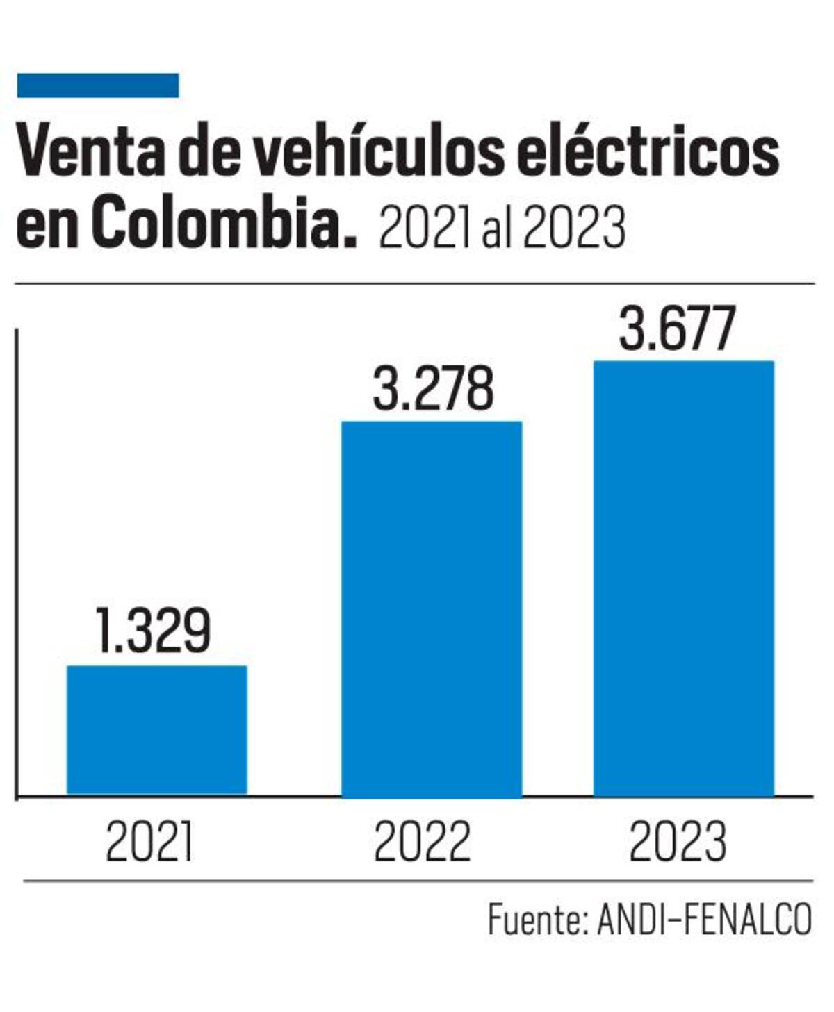 En 2023 en Colombia se vendieron 3.677 vehículos eléctricos nuevos lo que representó un crecimiento del 12,2% comparado con igual periodo de 2022. Diciembre fue el mejor mes del año para este tipo de vehículos con 493 unidades vendidas, un 112,5% más que los reportados en diciembre del año anterior. (Lea aquí: Conozca las cinco marcas de vehículos más vendidas en Colombia en 2023).