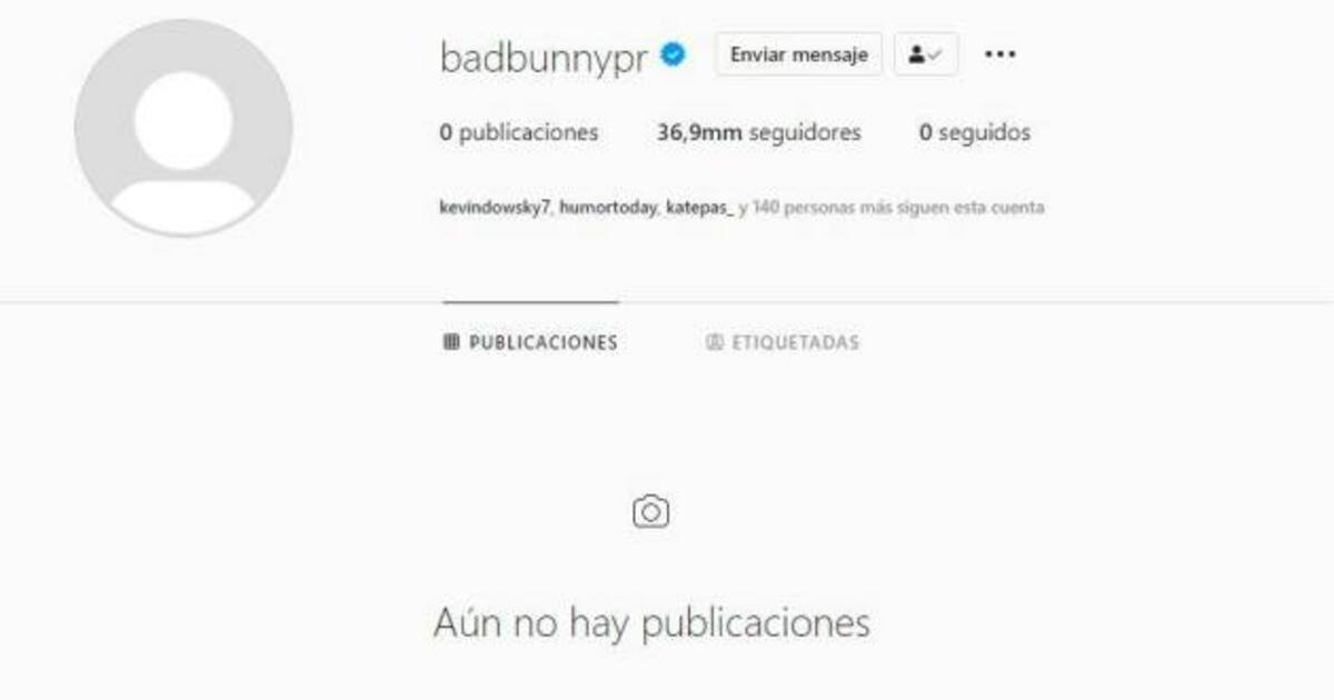 El cantante puertorriqueño Bad Bunny sorprendió a todos después de vaciar por completo su cuenta personal de Instagram, todas sus fotos, videos, hasta su fotografía de perfil han desaparecido, lo que alarmó a sus fans que a diario seguían sus pasos desde la red social, pero aún cuenta con casi 37 millones de seguidores. Lea aquí: confirman 176 casos de COVID-19 asociados a conciertos de Bad Bunny