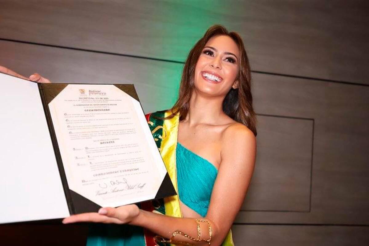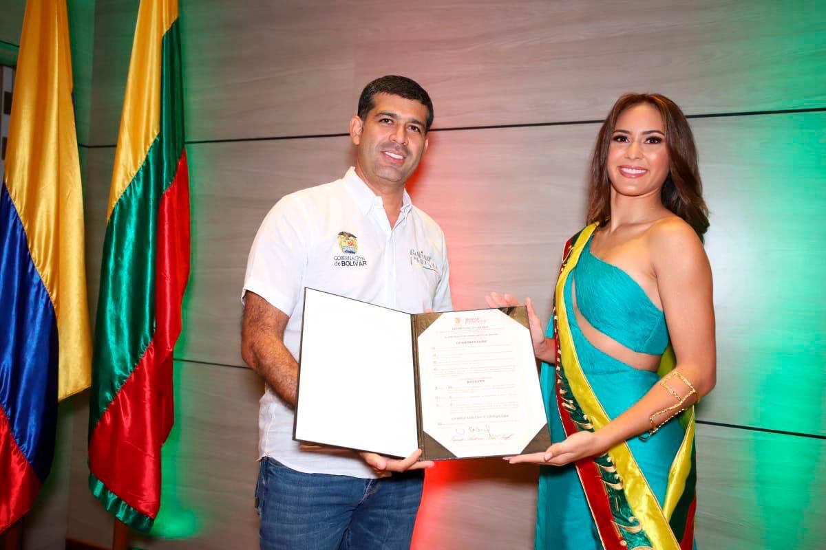 En un evento, que se llevó a cabo en el Palacio de la Proclamación, la joven de 23 años recibió de manos de Valentina Espinosa Guzmán, Señorita Colombia 2021 la banda bolivarense y el certificado como representante del departamento.