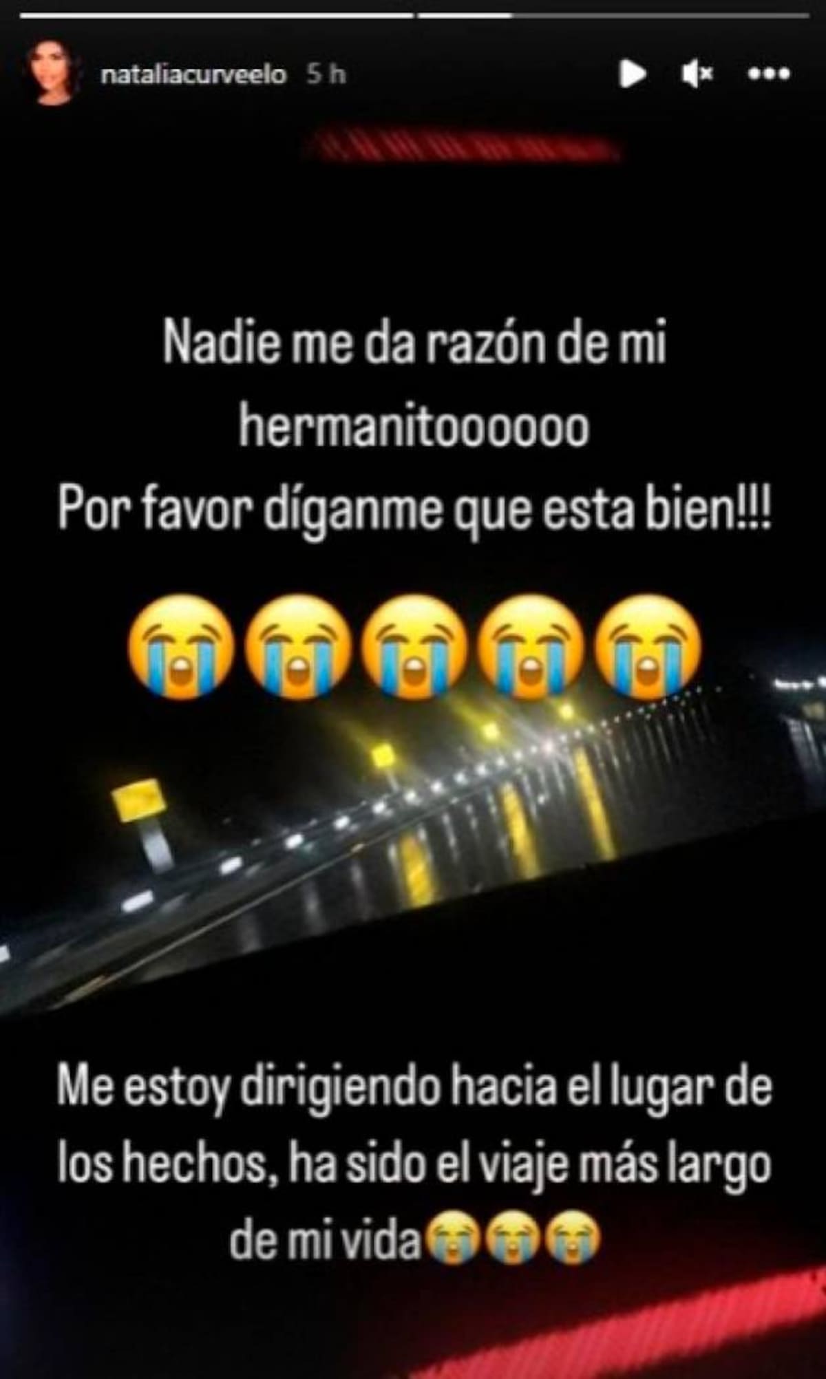 “Mis muchachos se acaban de accidentar, les pido orden mucho porque todos estén bien. Dios mío qué angustia tan grande”, dijo la joven artista.