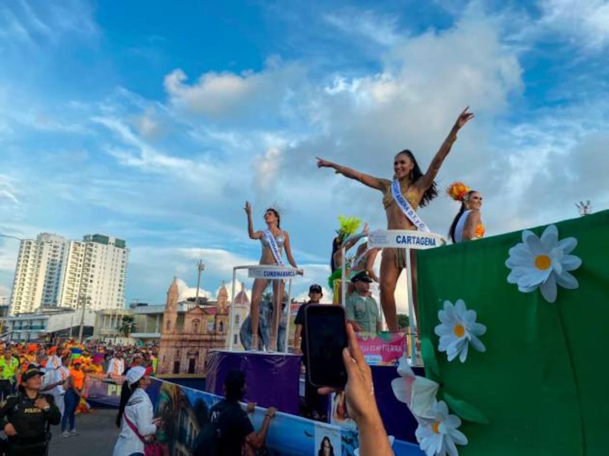 Las candidatas al CNB que subieron a la carroza fueron Cartagena, Bogotá, Bolívar y Cundinamarca, quienes se llevaron los aplausos y ovaciones de los cartageneros.