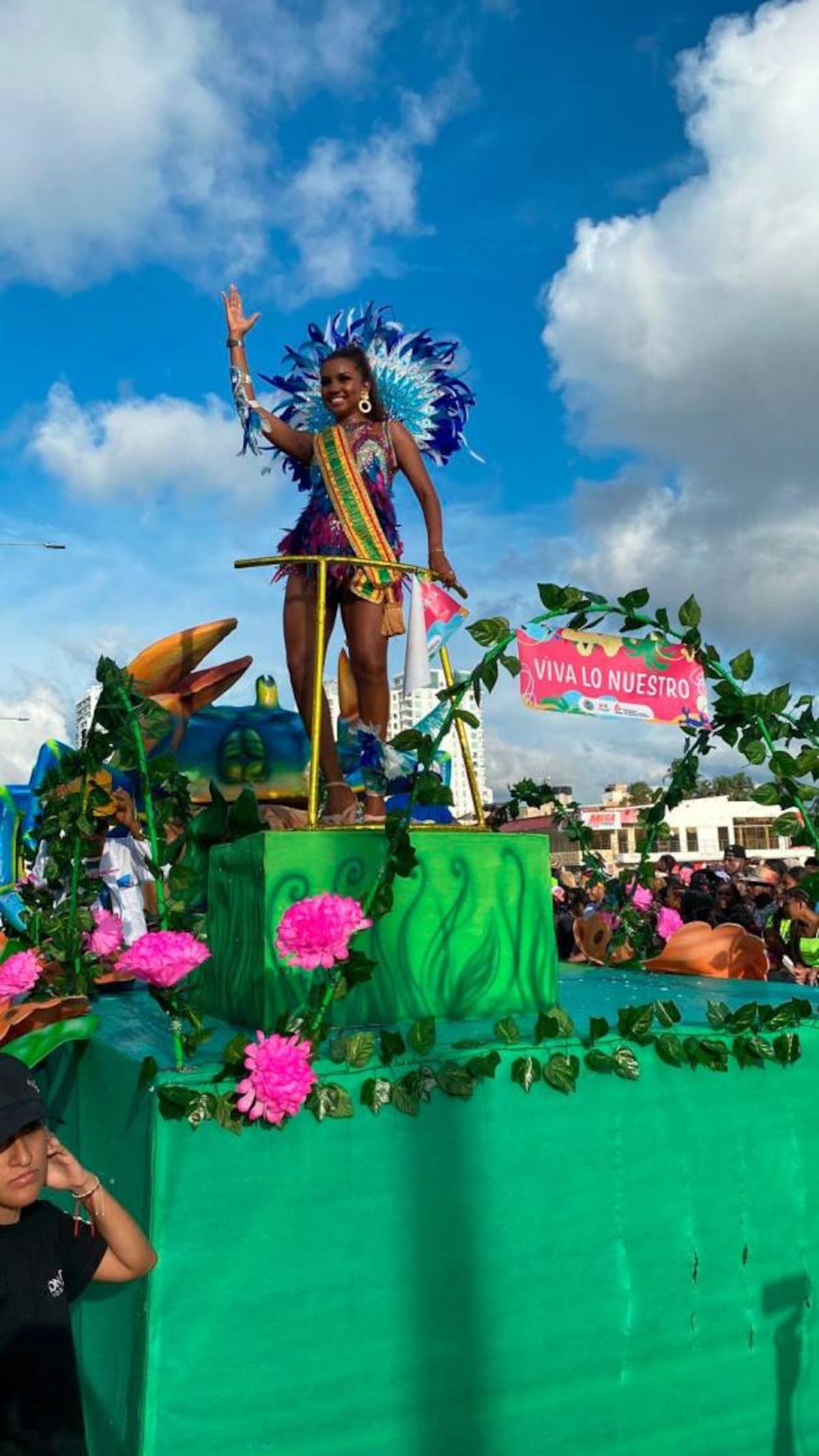 La carroza en la que iban las candidatas al RIC tuvo hizo un homenaje a los Djs de Cartagena con un gran mono Dj engafado, propio de los picós y los encuentros musicales de la ciudad. Definitivamente qué importante es para la Heroica la música y las festividades.