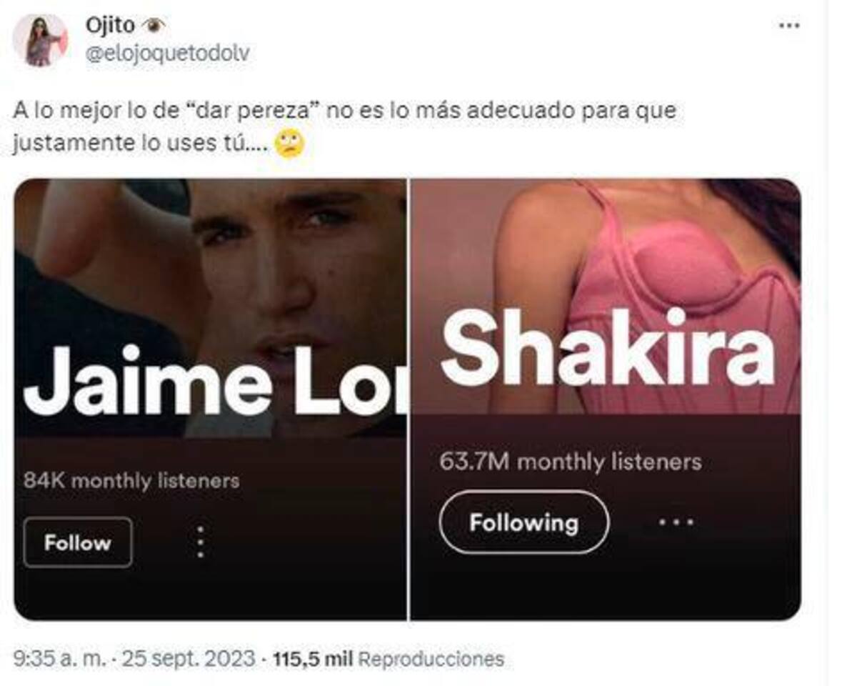 En su cuenta de Twitter (X) escribió: “Qué pereza das Shakira”. Ante el trino del actor, que además es cantante, los fanáticos de la barranquillera reaccionaron y le respondieron ante las declaraciones de Lorente. Lea aquí: ¡Siguen los escándalos! Piqué incitó a sus seguidores a hacer actos prohibidos
