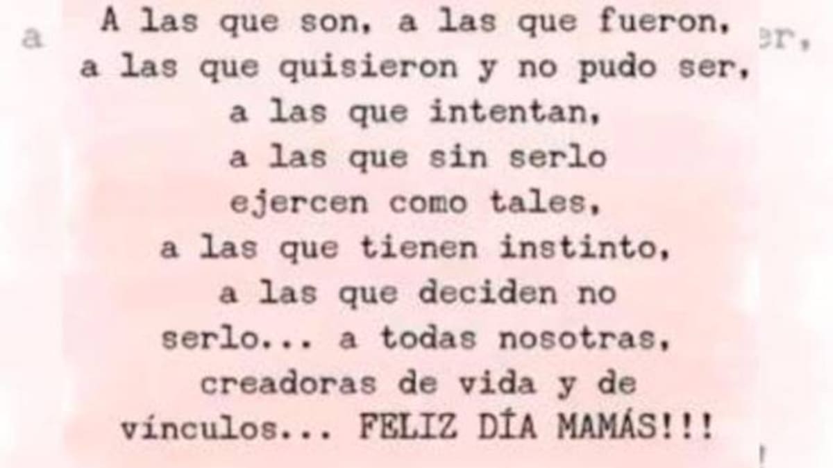 “A las que son, a las que fueron, a las que quisieron y no pudo ser, a las que sintieron, a las que sin serlo ejercen como tales, a las que tienen instinto, a las que deciden no serlo...a todas nosotras, creadoras de vida y de vínculos...¡Feliz día, mamás!”, escribió Rodríguez.