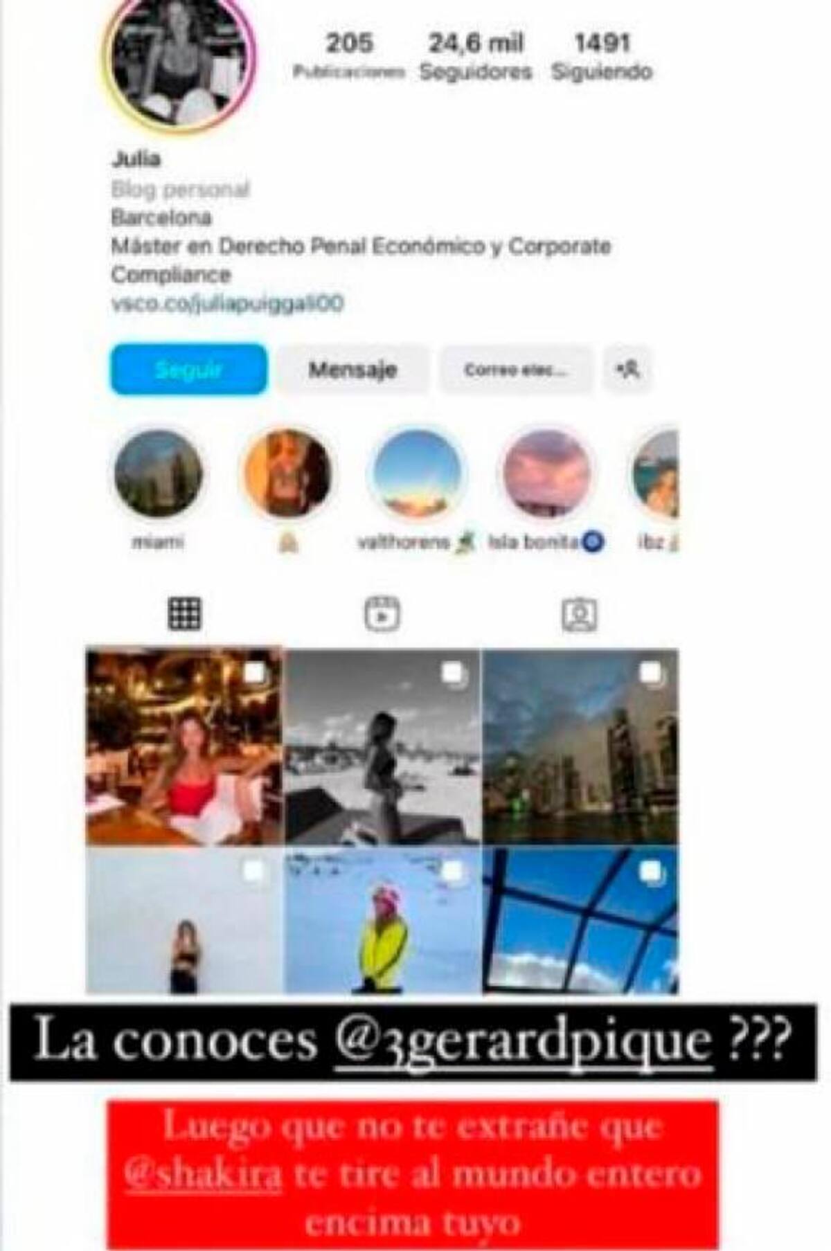 “¿La conoces Gerard? Luego no te extrañe que Shakira te tire al mundo entero encima tuyo”, escribió el paparazzi en la historia, haciendo referencia a la popular tiradera que la artista colombiana le dedicó a su ex.