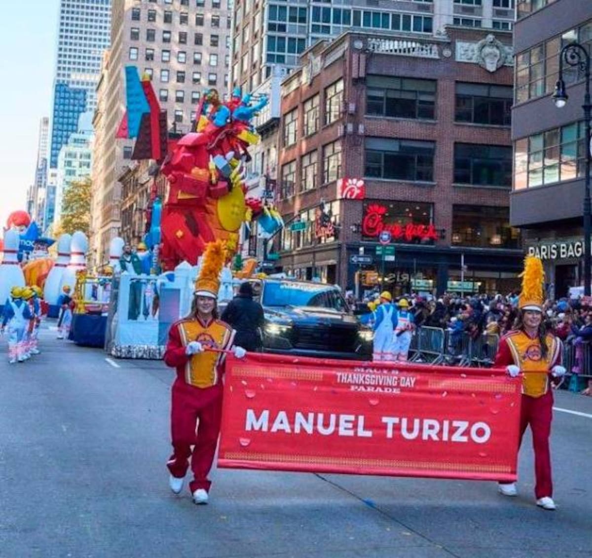 En un espectáculo lleno de emociones y música, en la icónica Parada de Macy's de este Día de Acción de Gracias en Nueva York, la sorpresa estuvo encabezada por el aclamado artista colombiano Manuel Turizo, quien se tomó el centro del escenario. Acompañando la majestuosa carroza de Lego, el carismático cantante hizo vibrar a la multitud al ritmo de sus más grandes éxitos. (Lea aquí: Shakira pagaría su multa con lo que factura en las plataformas digitales)