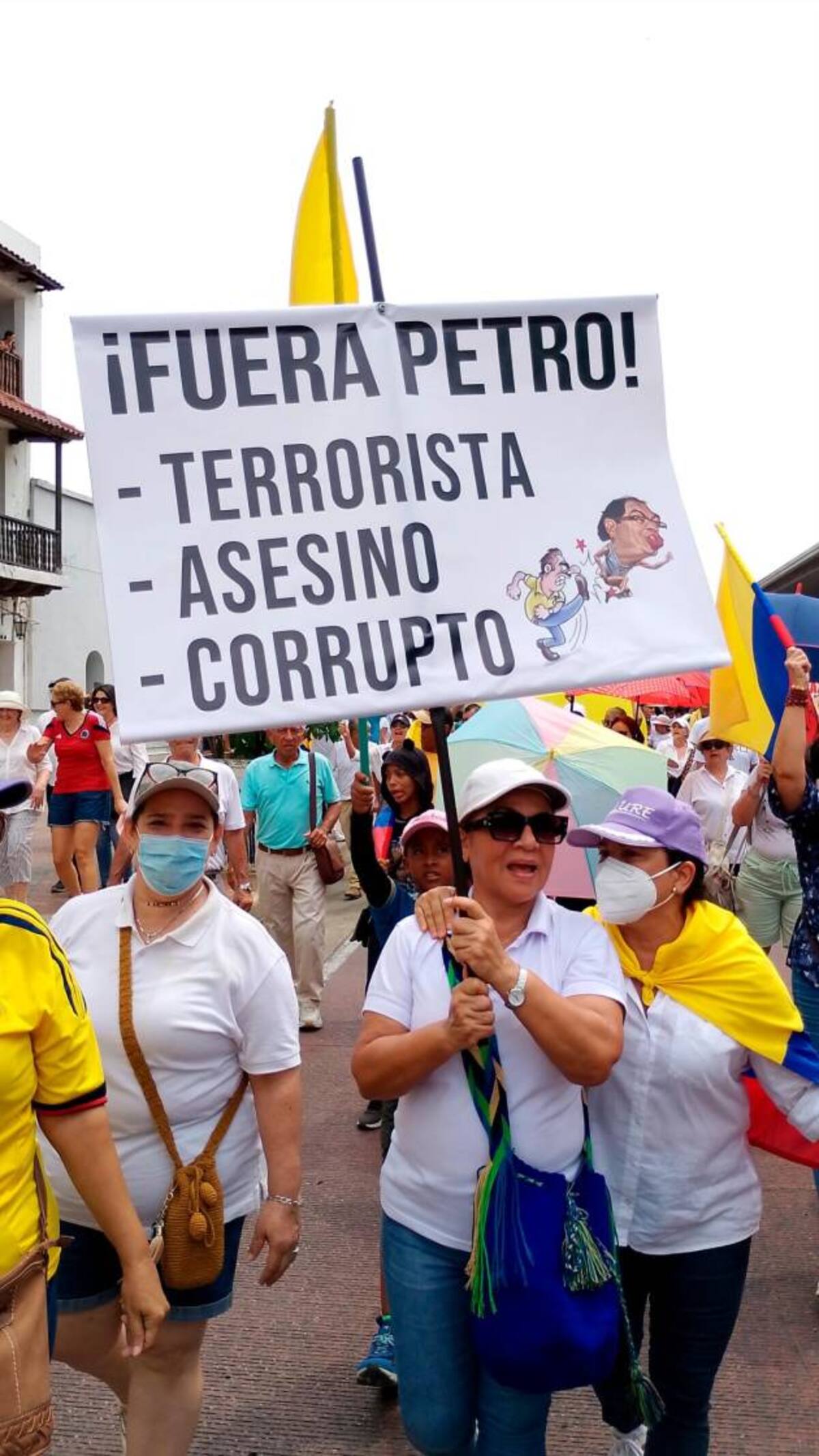 En Cartagena, la jornada también se realizó después de 10 a. m. y partió desde el monumento a la India Catalina. Lea: Así avanza la marcha contra el Gobierno Petro en Cartagena