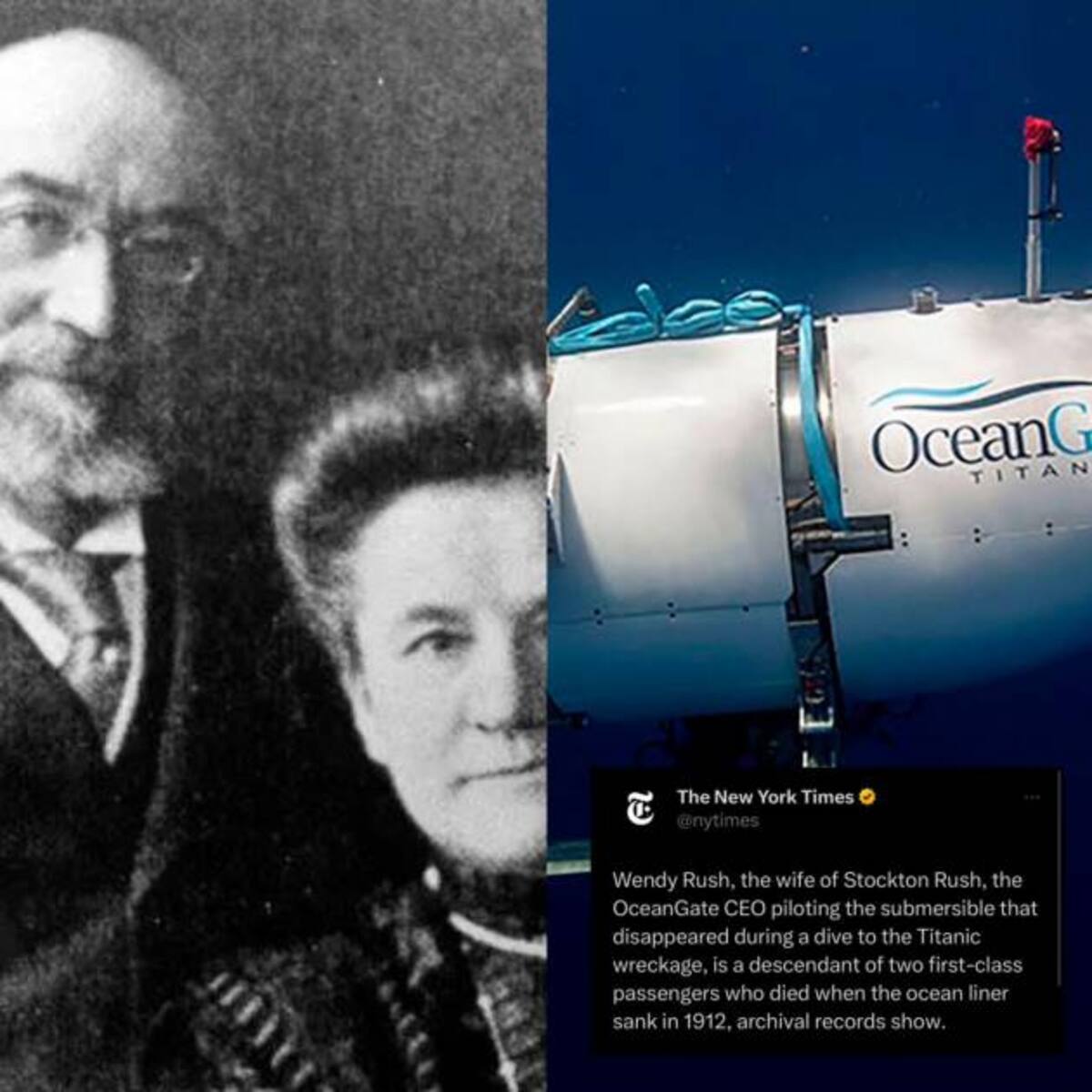 Según el medio de New York Times, Wendy Rush, la esposa del CEO de Oceangate, Stockton Rush , quien pilota el submarino extraviado, es descendiente de 2 pasajeros que iban en el Titanic en 1912, el año en que este naufragó en medio del océano, según varios registros de archivos que el medio logró recopilar.