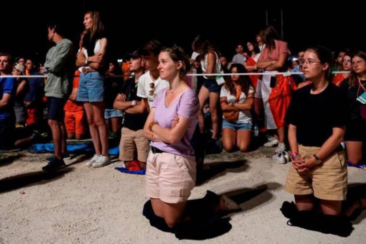 Jóvenes llegados de 151 países del mundo y que pasarán la noche en esta gran explanada para participar mañana en la misa de clausura de la JMJ y que ya habían colocado sus sacos de dormir, colchones y todo lo que pudieron encontrar para crear un poco de sombra.
